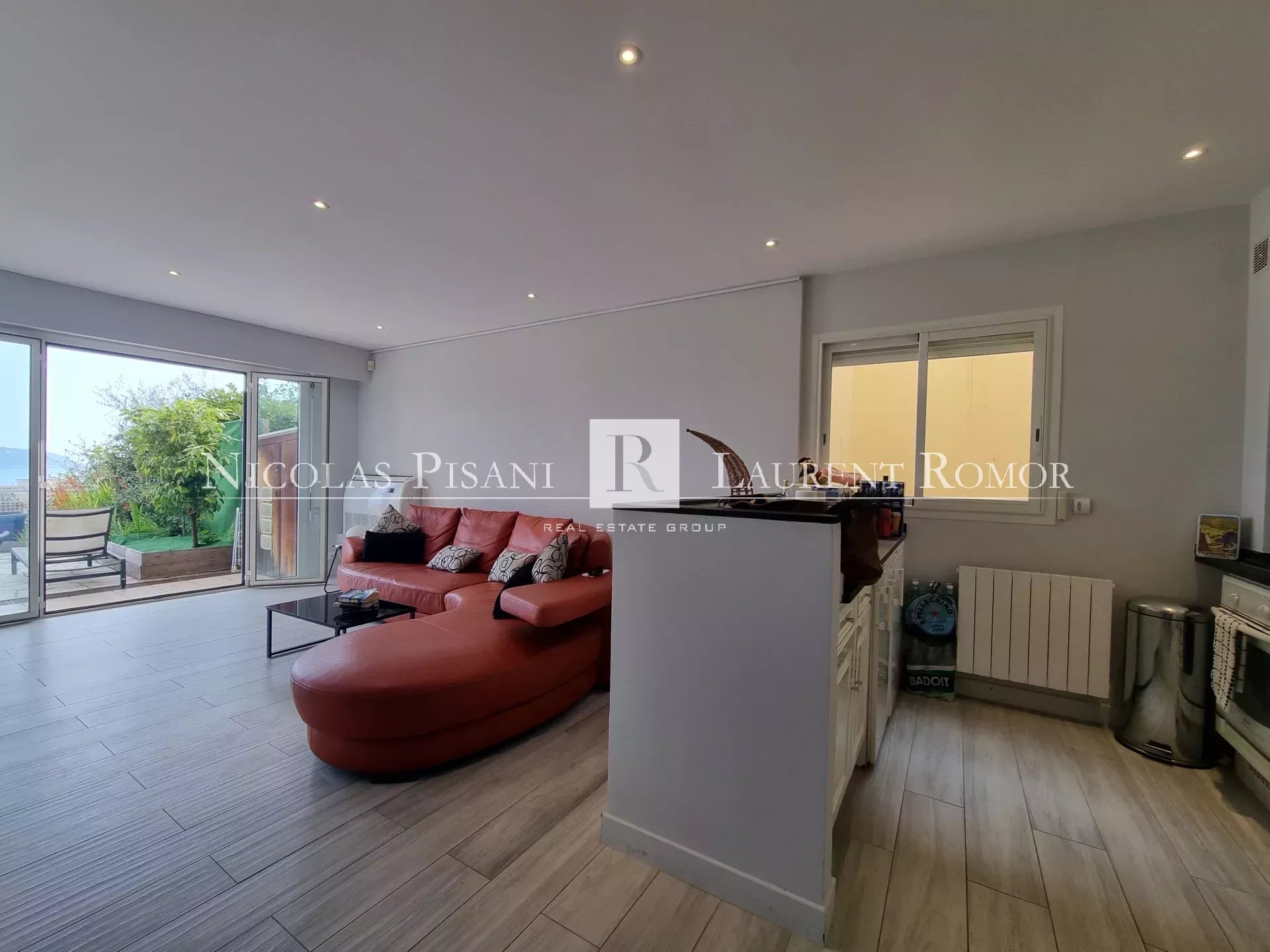 Idéalement situé au cœur du quartier prisé et recherché de la DARSE, cet élégant appartement de 63 m² séduit par son atmosphère paisible, sa luminosité et sa vue d’exception sur la mer et la presqu’île de Saint-Jean-Cap-Ferrat. L’espace de vie se compose d’un vaste séjour baigné de lumière, prolongé par de larges baies vitrées ouvrant sur une terrasse plein ciel de 49 m², véritable prolongement de l’intérieur et lieu de détente privilégié. La cuisine américaine s’intègre harmonieusement à cet espace convivial. L’appartement offre une chambre avec salle de douche, et la configuration permet aisément la création d’une seconde chambre. L’ensemble est en bon état et situé au sein d’une résidence calme et verdoyante, bénéficiant d’un parking collectif. Cet appartement allie confort, élégance et situation privilégiée, à quelques pas des commerces, restaurants, plages et transports. Un bien rare, idéal pour une résidence principale ou un pied-à-terre sur la Côte d’Azur.