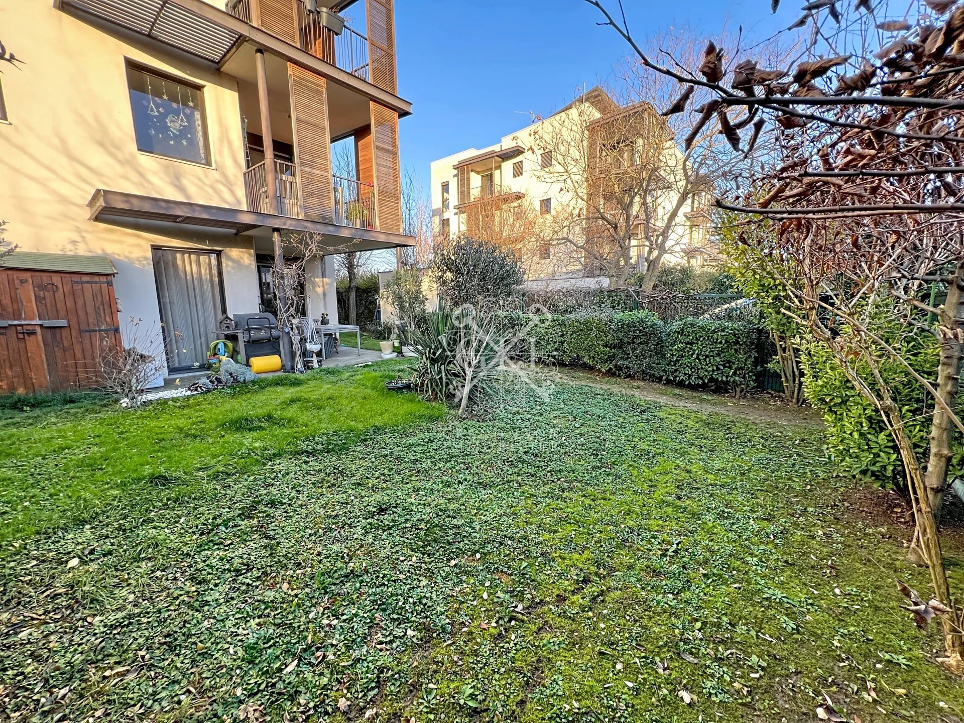Votre profil : Vous rêvez d’un cadre de vie calme et verdoyant tout en restant proche des commodités, transports et écoles ? Vous recherchez un appartement familial avec 4 chambres, de beaux volumes, un extérieur généreux et des prestations fonctionnelles ? Ce rez-de-jardin rare sur le secteur saura répondre à toutes vos attentes ! Emplacement : Saint-Priest – Secteur Hauts de Feuilly Dans un environnement résidentiel recherché, au cœur d’un secteur paisible et privilégié, cet appartement bénéficie d’un accès rapide aux commerces, établissements scolaires et transports, notamment le Tram T2. Un emplacement idéal pour concilier vie familiale, sérénité et mobilité. Le bien : Appartement T5 – 100 m² habitables + terrasse & jardin Situé en rez-de-jardin, ce charmant appartement familial se compose comme suit : – Entrée fonctionnelle – Spacieuse pièce de vie de 38 m² avec séjour lumineux – Cuisine ouverte entièrement aménagée et équipée – Belle terrasse de 13,50 m² idéale pour les repas extérieurs – Jardin végétalisé privatif de 178,50 m², véritable écrin de verdure – 4 chambres confortables – Salle de bain + salle d’eau – WC indépendant – Garage simple (SUS : Place de parking). Précisions : – Parfait pour une famille – Accès PMR – Lumière naturelle grâce à de belles ouvertures – Secteur calme, résidence agréable – Proche tramway, commerces, écoles Copropriété : Résidence bien entretenue et sécurisée (Informations détaillées sur les charges et procédures : non communiquées) Diagnostics techniques : DPE: C 239 KWH/m2/an GES: C 49 KG C02/m2/an (Aucune anomalie signalée) Mandataire : Honoraires à la charge du vendeur. Grand Lyon Immobilier – RCS Lyon n° 824 926 638 – Code APE 6831 ZCarte professionnelle Gestion immobilière et Transaction n° CPI 6901 2017 000 016 291 / CCI de Lyon. Garantie financière assurée par GALIAN Assurances