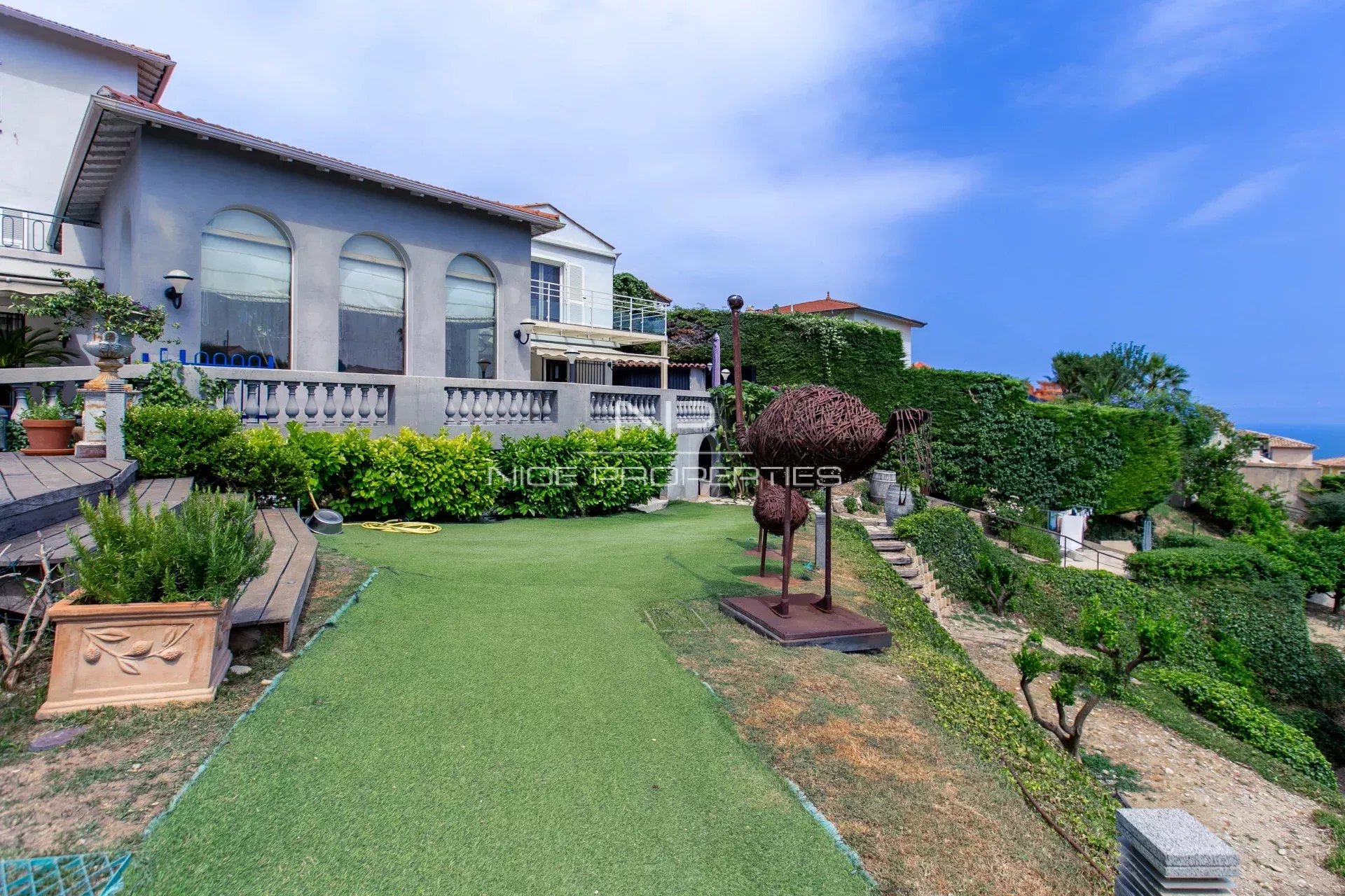NICE OUEST / VENTABRUN : À cinq minutes du centre-ville et de la mer, dans un environnement résidentiel particulièrement calme, superbe propriété de 356 m² hors annexes jouissant d'un ensoleillement maximal et d'un cadre de vie idyllique, avec en prime une splendide vue mer. La maison principale offre une triple réception avec salon cathédrale, une grande cuisine, une chambre de maître en suite, 4 autres chambres et 3 salles de bains, un bureau. La plupart des pièces ouvrent sur une terrasse ou sur le jardin, avec de merveilleuses vues panoramiques. En outre, la propriété dispose d'une cuisine d'été avec salon d'hiver, d'une salle de sport, d'un appartement 3 pièces indépendant, d'une belle piscine et d'un grand garage. Cave, locaux technique et nombreux stationnements. Vous ne pourrez qu'être séduits par le charme de cette propriété atypique et extrêmement confortable. Honoraires de 5% inclus à la charge du vendeur.