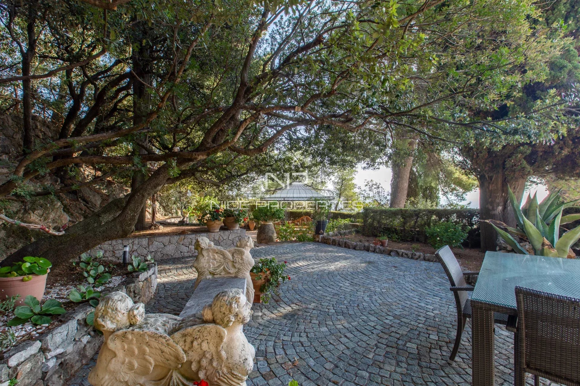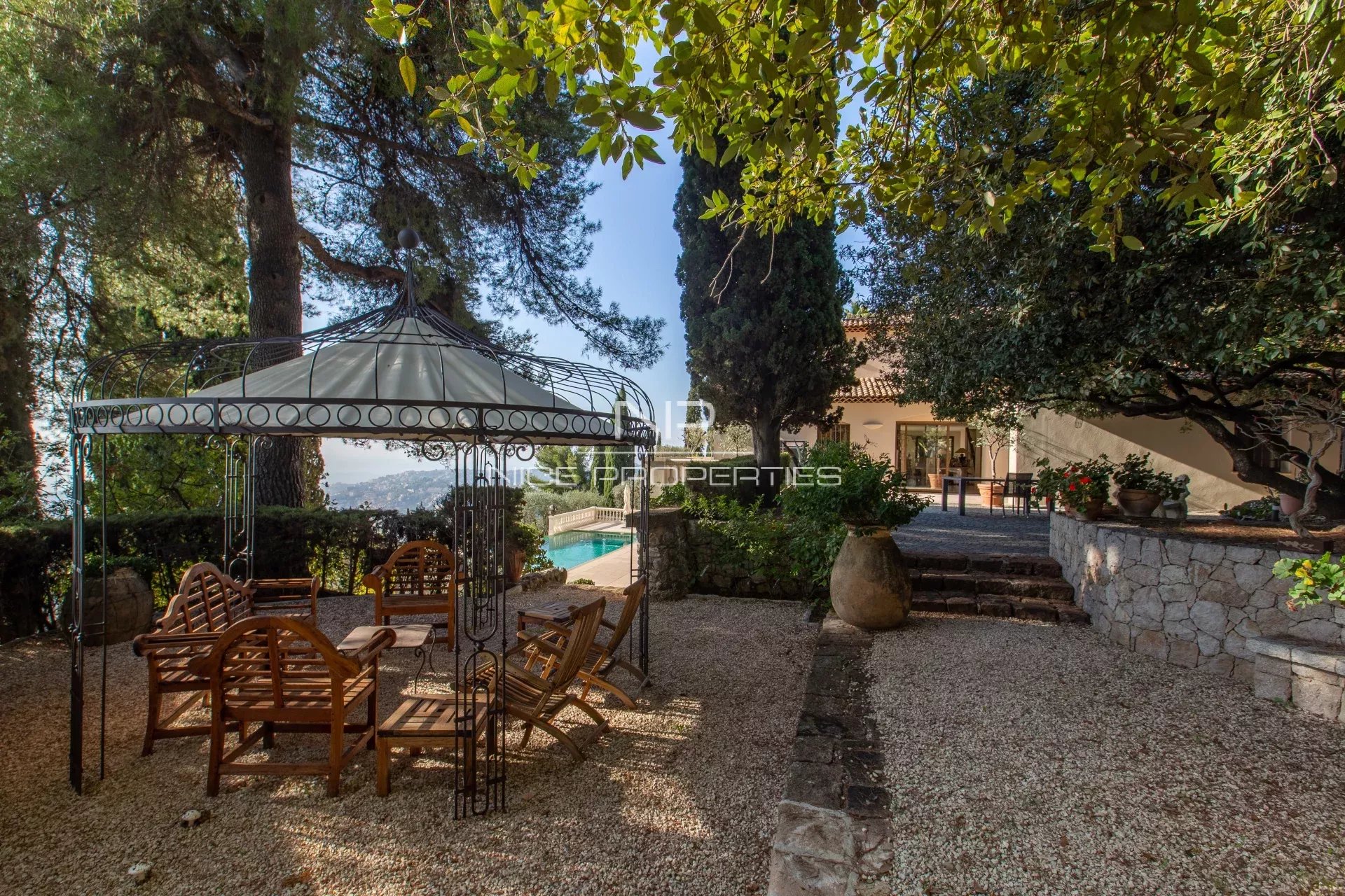 NICE COLLINES / GAIRAUT : Située en position dominante, au coeur d'un magnifique parc composé de différentes planches et d'allées de promenade, très belle et lumineuse propriété d'inspiration néo-provençale construite en 1987, en excellent état, offrant 7 pièces principales dont 6 avec une splendide vue panoramique collines et mer. L'entrée dessert une double réception de 105 m² ouverte sur une grande terrasse, une cuisine, une chambre avec bain, une buanderie et un WC invités. A l'étage, une superbe suite parentale de 50 m² avec terrasse ; au niveau jardin, 3 belles chambres avec bain ou douche, un WC, une cave et un petit atelier. Le magnifique parc est complanté d'essences méditerranéennes dont certaines sont centenaires, et offre de nombreux espaces ombragés ainsi qu'un grand abri de jardin, sans oublier la superbe piscine à débordement avec sa grande plage dallée. Quatre parkings extérieurs. Dossier photos complet disponible sur demande. Honoraires de 5% inclus à la charge du vendeur. Les informations sur les risques auxquels ce bien est exposé sont disponibles sur le site Géorisques : georisques.gouv.fr