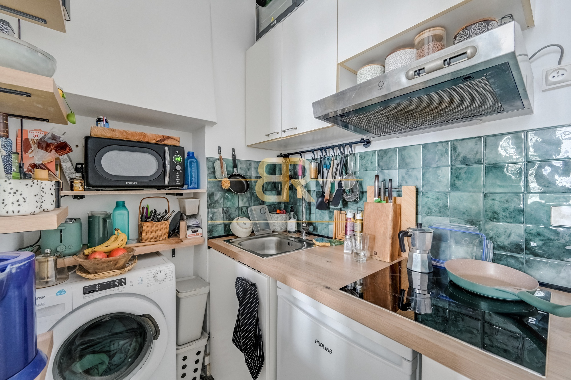 L'appartement se compose d'une agréable pièce de vie avec cuisine semi-ouverte, offrant un espace convivial et optimisé, le tout donnant sur cour pour un calme appréciable. Vous serez séduit par la belle hauteur sous plafond ainsi que par le charme de l'ancien, sublimé par une élégante cheminée prussienne.
