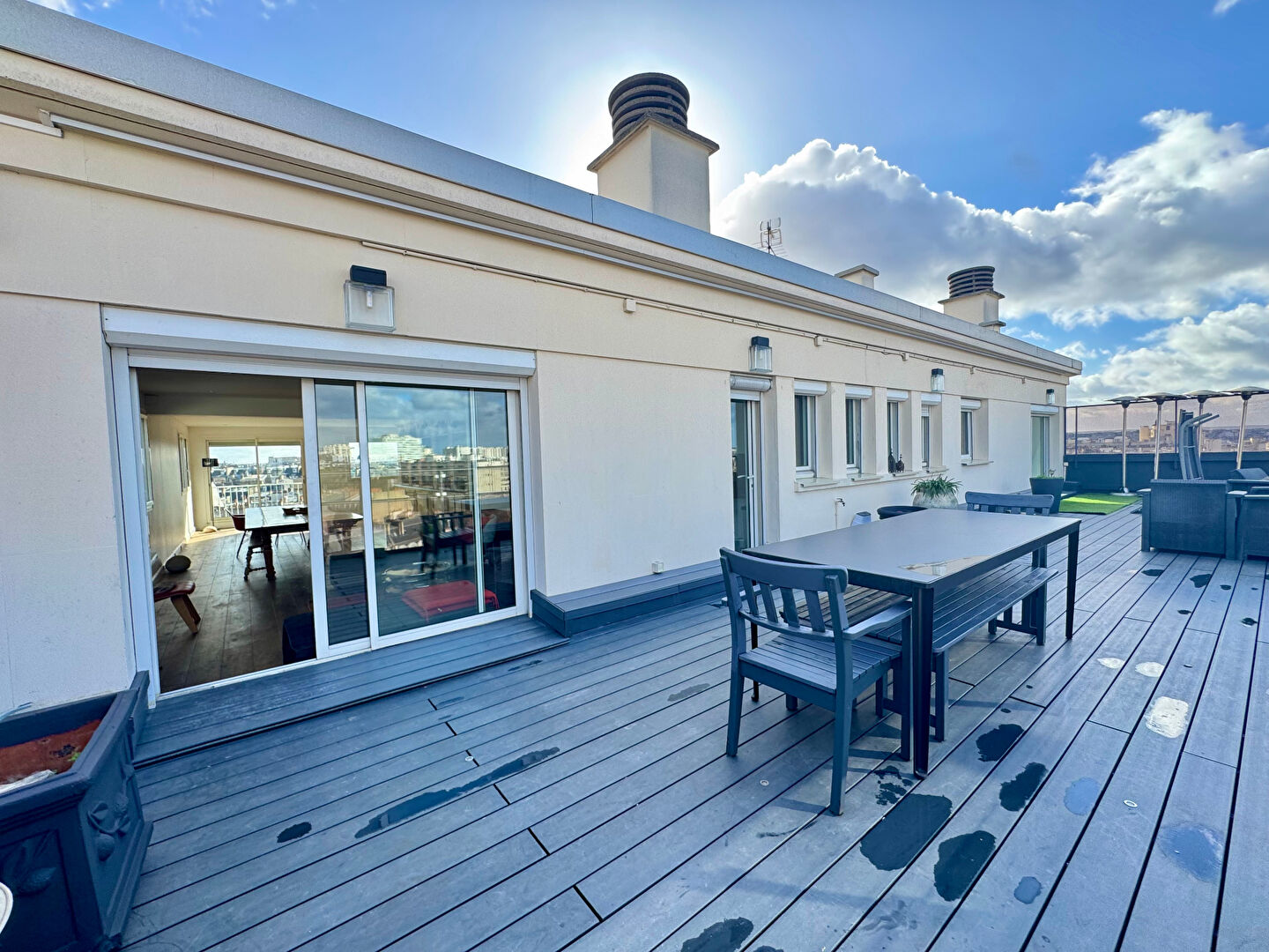 Les loges immobilier vous propose à la location en bail civil ou résidence secondaire, un appartement coup de coeur à Paris 17, en dernier étage, d'une superficie de 103,50m2 et 62 m2de terrasse, vue tout Paris. Ce bien est composé d'une entrée, d'un vaste séjour de 55 m2 environ donnant sur la terrasse (62 m2 environ) vue Paris, de deux chambres, une cuisine aménagée, une salle de bains, une cave et un parking en sous sol. rendez-vous possible à partir de lundi 16 février Alexandre DESNOYERS (EI) Agent Commercial - Numéro RSAC : - .