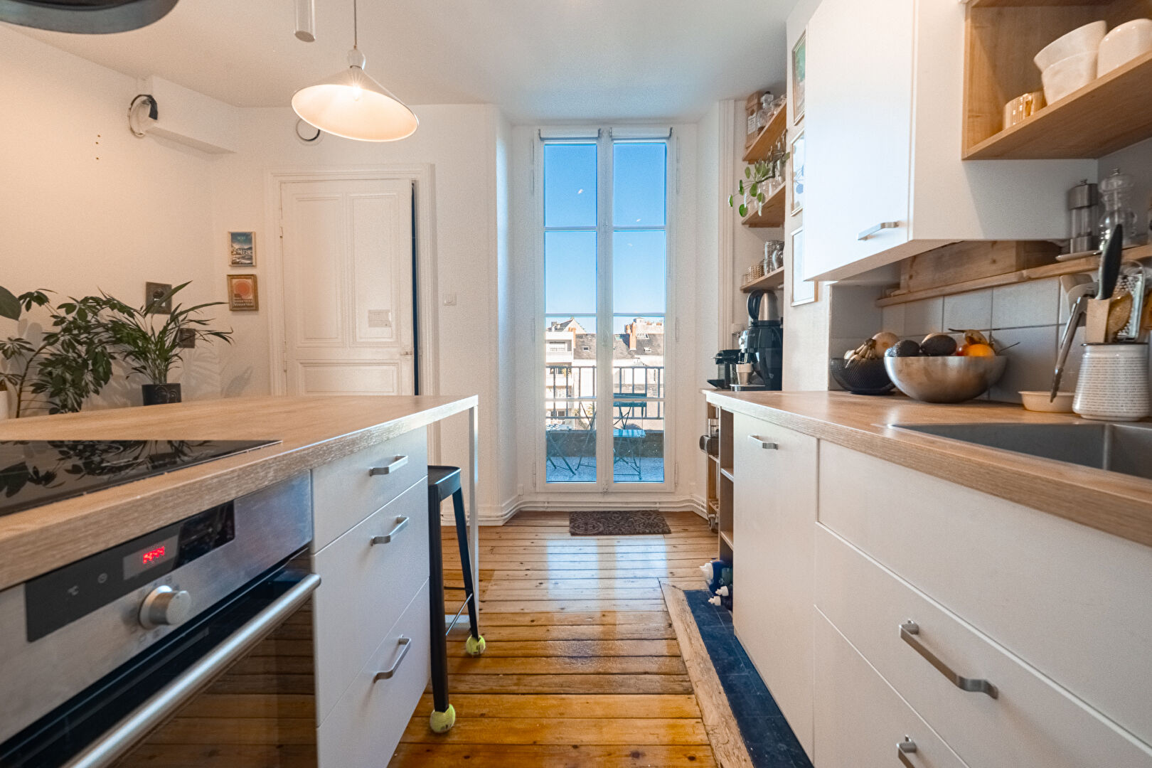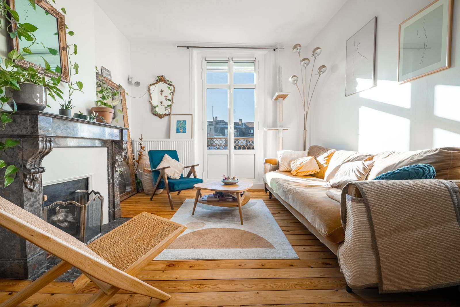 EXCLUSIVITE - ANGERS GARE Idéalement situé entre la gare d'Angers et la place de la Visitation, au coeur d'un secteur prisé bénéficiant de l'ensemble des commodités, cet appartement T4 de 77 m² propose un cadre de vie rare en centre-ville. Lumineux et traversant, il dévoile tout le charme de l'ancien avec ses parquets et ses cheminées. Le salon, élégant et chaleureux, offre une atmosphère raffinée. La cuisine dînatoire séparée, parfaitement aménagée, s'ouvre sur une terrasse, véritable prolongement de l'espace de vie. L'espace nuit se compose de trois chambres, ou, selon les besoins, de deux chambres et un bureau, permettant une organisation modulable et confortable. L'appartement, clé en main, s'inscrit au sein d'une copropriété bénévole et conviviale. La possibilité de stationner les vélos dans le hall d'entrée vient compléter les prestations de ce bien. Un appartement de caractère, alliant élégance, fonctionnalité et emplacement privilégié. (4.81 % honoraires TTC à la charge de l'acquéreur.) Copropriété de 6 lots (Pas de procédure en cours). Charges annuelles : 800 euros.