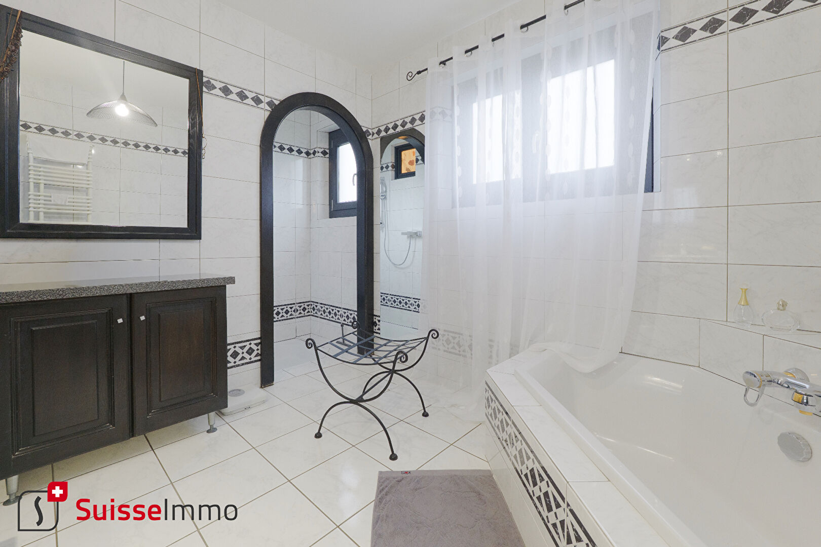 MONTBELIARD / DUNG - Nouvelle exclusivité Suisse Immo Découvrez en impasse cette maison d'architecte des années 2000 aux prestations haut de gamme, rénovée en 2020-2021 182 m2 habitables sur 18 ares de terrain plat, avec piscine Les + : - Façades / sous-toiture 2021 - Fenêtres / volets 2020, avec triple vitrage - Cuisine + sol 2020 - Piscine avec PAC / volet roulant, avec fosse de plongée - Cheminée tubée avec insert - Store / portail / garage SOMFY pilotables a distance - Chaudière de 2016 à condensation fioul (1500 L / an) - Triple garage carrelé Au RDC : - Salon séjour - Cuisine - Chambre - Salle de bains (douche / baignoire) - WC indépendant A l'étage : - Mezzanine - Chambre parentale avec dressing - Chambre avec balcon - Salle d'eau avec meuble vasque et WC Sous-sol complet, garage 3 voitures.