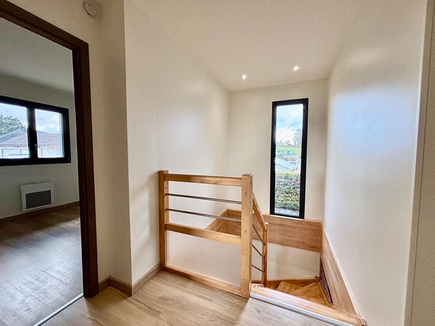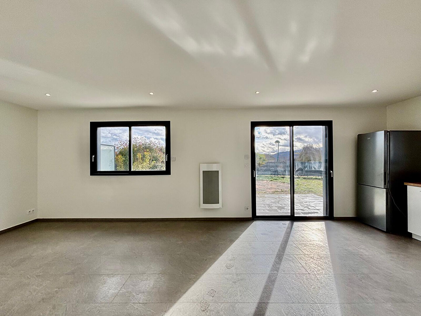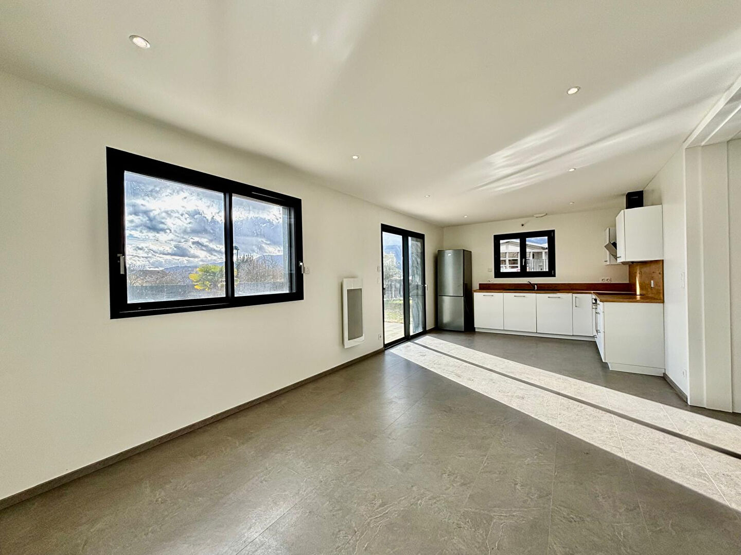 EXCLUSIVITE IMMODEC ! A Vallières-sur-Fier, venez découvrir cette maison jumelée de 103,56 m², livrée en 2020. Construite en ossature bois, elle allie modernité, confort et efficacité énergétique, le tout dans un environnement calme et verdoyant, à proximité immédiate du centre du village. Dès l'entrée, vous serez séduit par la luminosité. Le rez-de-jardin est composé d'une cuisine ouverte sur la salle à manger et le salon. L'accès direct à la terrasse et au jardin permet de profiter pleinement des extérieurs et des beaux jours. Ce niveau dispose également d'une chambre, d'une salle d'eau et d'un WC indépendant, offrant une vie de plain-pied pratique et agréable. A l'étage, trois chambres spacieuses avec placards intégrés accueillent confortablement toute la famille. Une salle de bains avec WC complète cet espace nuit. Côté confort, la maison dispose d'un chauffage électrique et d'un chauffe-eau thermodynamique, garantissant une consommation maîtrisée. En annexe, vous bénéficierez d'un garage fermé ainsi que de places de stationnement extérieures. Nichée dans un secteur paisible tout en restant proche des commodités et des écoles, cette maison récente offre un cadre de vie idéal pour une famille souhaitant s'installer dans un environnement serein, à seulement quelques minutes de Rumilly. Ce bien vous est proposé en exclusivité par l'agence IMMODEC. Pour tous renseignements complémentaires ou visites n'hésitez pas à contacter votre agence LOCALE et INDÉPENDANTE. Nous nous ferons un plaisir de vous accompagner dans votre projet d'acquisition, vente ou investissement locatif !