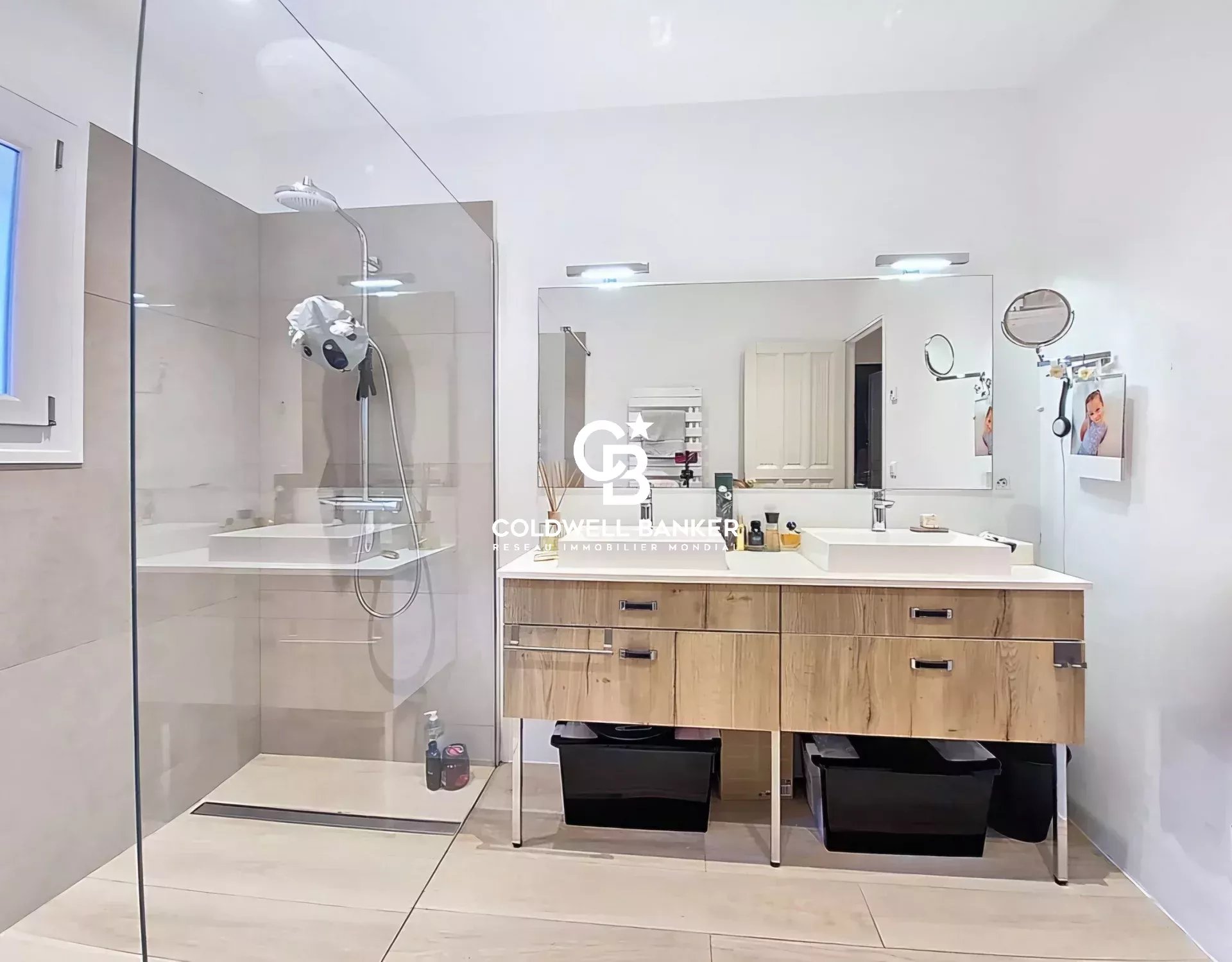 Dans un environnement résidentiel recherché, au calme absolu, cette propriété entièrement rénovée avec des matériaux de qualité incarne un art de vivre élégant et serein. Développant 150m² habitable dont un garage de plus de 32m², la maison offre des volumes harmonieux et une circulation fluide. Dès l’entrée, les volumes et la luminosité séduisent immédiatement. Le séjour, chaleureux et raffiné, s’organise autour d’une cheminée et s’ouvre sur une cuisine semi-ouverte réalisée sur mesure, alliant esthétique et fonctionnalité. L’ensemble se prolonge vers une superbe loggia fermée, baignée de lumière, pensée comme un véritable jardin d’hiver. Modulable selon les saisons, elle s’ouvre pleinement en été pour laisser place à une harmonie parfaite entre intérieur et extérieur. Le rez-de-chaussée propose également : Deux chambres confortables, Une salle d’eau contemporaine avec double vasque et douche à l’italienne, WC indépendants. À l’étage, une élégante chambre en suite avec terrasse tropézienne privative exposée plein Sud offre intimité et ensoleillement optimal. Extérieurs paysagers & espace bien-être Édifiée sur un magnifique terrain arboré et clôturé de 1 400 m², avec arrosage automatique et éclairages paysagers, la propriété dévoile des prestations rares : Piscine Desjoyaux aux lignes élégantes, vastes plages ensoleillées, cuisine d’été avec barbecue,douche extérieure et WC dédiés à l’espace piscine. Terrasse supplémentaire aménagée en salon d’extérieur, protégée par un store banne et espace détente avec jacuzzi Un véritable lieu de réception et de relaxation, pensé pour profiter pleinement du climat méditerranéen. La maison dispose également d’un garage avec électricité, d’un portail électrique, est construite sur vide sanitaire et bénéficie d’un permis accordé pour la création d’un studio indépendant, offrant un potentiel supplémentaire. Une propriété confidentielle et raffinée, idéale en résidence principale ou secondaire, à quelques minutes des plages, où chaque détail a été soigneusement pensé. Dossier complet et visite sur demande. Valérie MASSON - Laurence GOLLIOT Prestige Real Estate consultant - Global Luxury Brand Spécialist Esterel Realty Coldwell Banker - Coldwell Banker Europe +33 (0) 646 445 411 +33 (0) 676 589 119 valerie.masson@coldwellbanker.fr laurence.golliot@coldwellbanker.fr