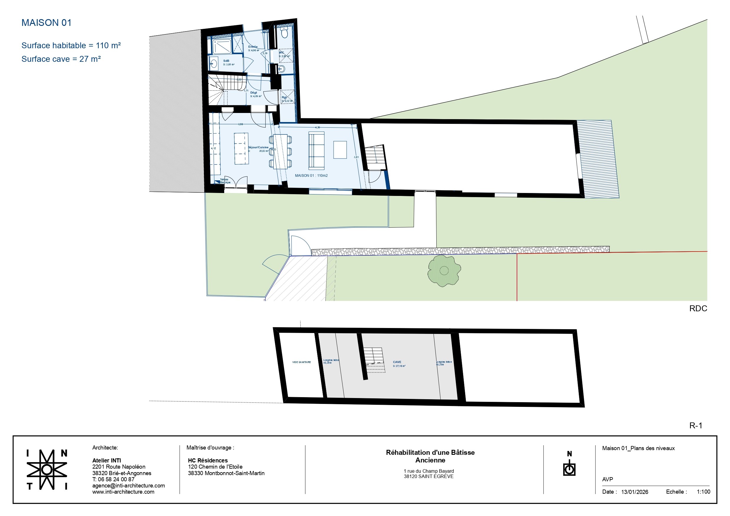 La projection qui a été réalisée par un architecte permet de composer l'appartement avec un séjour ouvert sur la cuisine, trois chambres, deux salles de bains, deux WC ainsi que l'accès à une cave de 27 m².