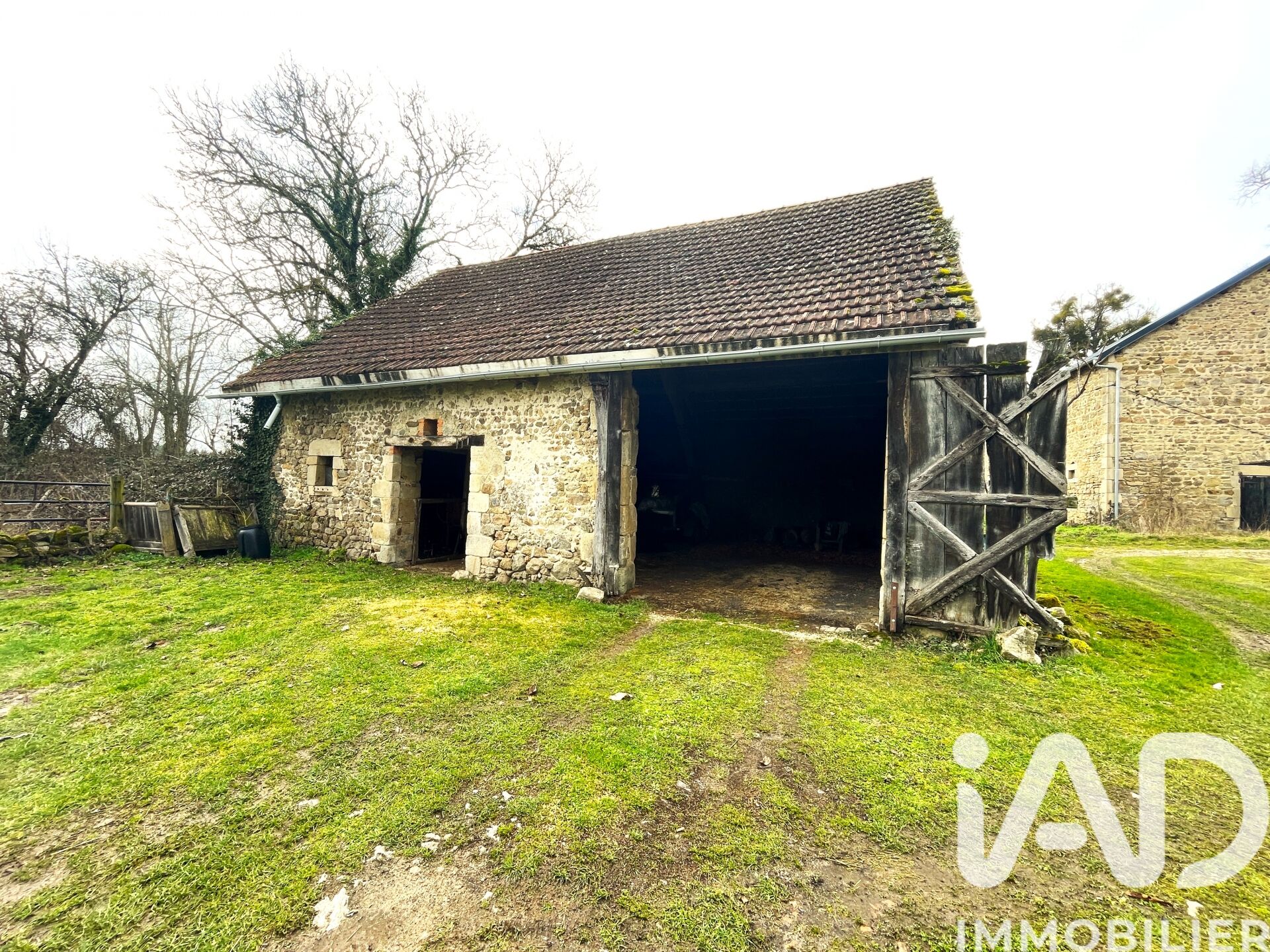 Côté extérieur, le vaste terrain offre de multiples possibilités : jardin potager, espace détente, jeux pour enfants. Une grange, une écurie, un atelier d'une surface totale d'environ 150 m² complètent ce bien