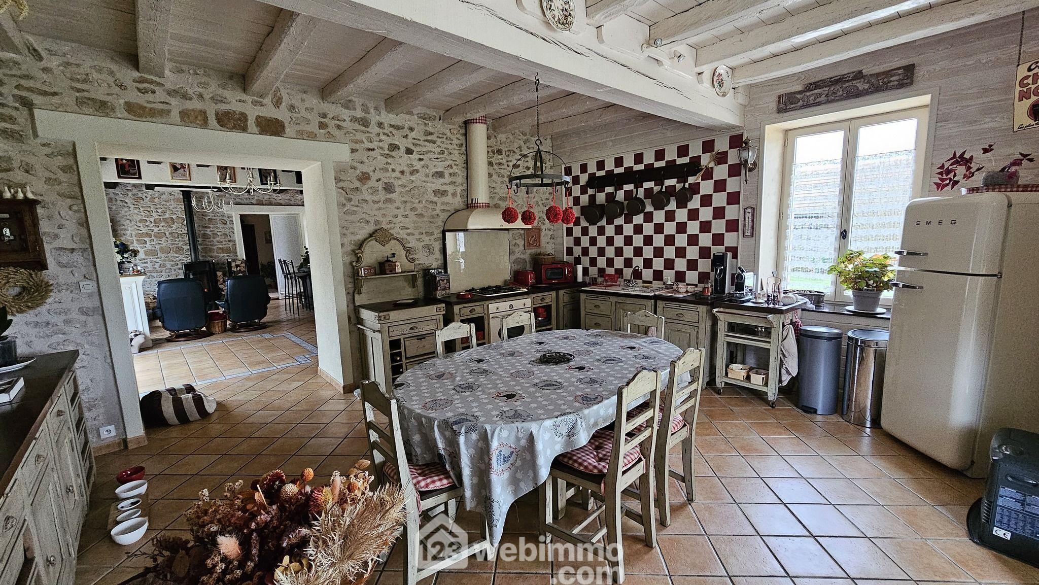 Votre agence 123webimmo l'immobilier au meilleur prix vous présente : Maison de caractère 180 m² + dépendance de 80 m² ? espace, charme et authenticité sur 1 773 m² de terrain. Cette propriété en pierre de 180 m², pleine de caractère et de matériaux authentiques, se situe dans un cadre paisible et parfaitement adapté à la vie de famille. Dès l'entrée on se dirige vers un séjour chaleureux agrémenté d'un poêle à bois, créant une atmosphère douce et conviviale. La cuisine, véritable coeur de la maison, offre 25 m² d'espace entièrement équipé et propice aux repas et aux moments partagés. Le rez-de-chaussée comprend également une salle d'eau, un WC séparé et un atelier fonctionnel qui s'intègre harmonieusement au quotidien. À l'étage, la mezzanine distribue deux chambres, toutes deux confortables et lumineuses. Un second escalier, accessible depuis le patio, mène à un espace indépendant composé d'un bureau et d'une troisième chambre, créant une configuration idéale pour télétravailler, recevoir un adolescent ou offrir un espace privé à un proche. La dépendance de 80 m², entièrement aménagée, propose un séjour ouvert sur une cuisine équipée, une salle d'eau et un WC séparé. À l'étage, un dressing conduit à une chambre mansardée, offrant un espace intime et parfaitement autonome. En entresol avec une entrée indépendante, une pièce de vie de 30 m² dotée d'une cheminée à insert permet d'imaginer un salon cosy ou un espace de détente, prolongé par une cave pleine d'authenticité. Le terrain de 1 773 m² entièrement clos et arboré, soigneusement entretenu, offre un cadre paisible et agréable, ponctué d'un abri de jardin, d'un auvent pour deux voitures et d'une pergola. Plusieurs terrasses entourent la maison, invitant à profiter du soleil à chaque moment de la journée. Cette propriété représente une opportunité unique de s'installer immédiatement et de bénéficier d'un confort de vie exceptionnel. La dépendance offre également un potentiel remarquable pour une activité libérale, une location ou l'accueil d'un parent. L'entretien général de la maison, tant à l'intérieur qu'à l'extérieur, est extrêmement soigné, témoignant du sérieux et du soin constant apportés à cette demeure au fil des années. Contactez-nous pour organiser une visite et découvrir en personne tout le charme et le potentiel de cette propriété. 'L'immobilier avec sincérité et expertise, pour votre projet de vie'. Les informations sur les risques auxquels ce bien est exposé sont disponibles sur le site du gouvernement : https://www.georisques.gouv.fr.Informations LOI ALUR : Honoraires charge vendeur. (gedeon_26615_32697044)