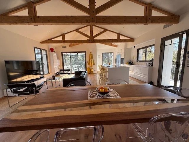 Superbe villa entièrement rénovée en 2025, cette propriété aux prestations haut de gamme séduit par ses volumes spectaculaires et sa luminosité omniprésente. Développée sur deux niveaux, la maison s’ouvre à l’étage sur une spacieuse pièce de vie traversante, véritable cœur de la maison. Baigné de lumière grâce à ses multiples expositions Sud-Ouest, cet espace aux lignes contemporaines accueille un séjour, une salle à manger et une cuisine ouverte parfaitement équipée avec un îlot central. Un espace détente pouvant aisément être transformé en quatrième chambre. Une terrasse prolonge harmonieusement la pièce de vie et offre une vue dégagée. Le rez-de-jardin est entièrement dédié à l’espace nuit et propose trois chambres dont une élégante suite parentale avec dressing et salle d’eau. Un accès direct à la terrasse et à la piscine est possible de la suite et d'une chambre. Des aménagements sur mesure et une buanderie valorisent l’ensemble. À l’extérieur, le jardin paysagé accueille une piscine chauffée de type couloir de nage en pierre de Bali et plusieurs terrasses en ipé, créant un véritable lieu de vie tourné vers l’extérieur et un pool house. Deux places de parking. Maison clé en main aux finitions soignées et au confort optimal : menuiseries aluminium, double vitrage anti-effraction, climatisation réversible et rénovation complète récente. Excellente performance énergétique. Les informations sur les risques auxquels ce bien est exposé sont disponibles sur le site https://errial.georisques.gouv.fr/#/