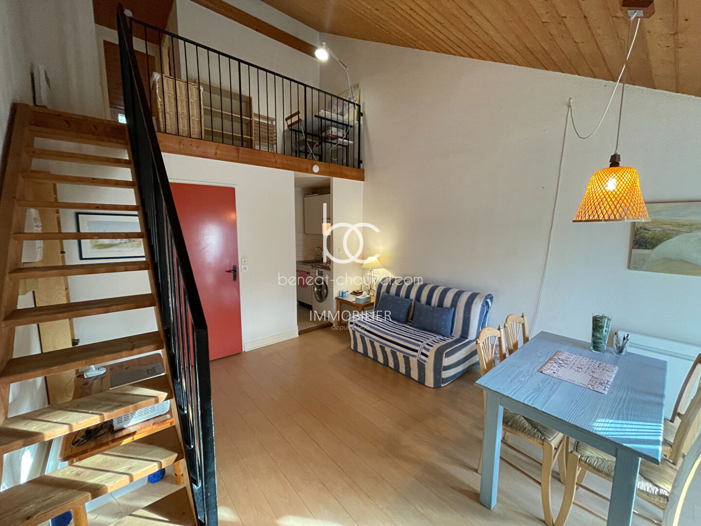 EXCLUSIVITÉ ARZON (56640) - Très belle exposition pour cet appartement rénové dans une résidence en accès direct à deux plages, situé au premier et dernier étage et comprenant une entrée avec placard, un séjour avec kitchenette et un WC indépendant au premier niveau. A l'étage, vous trouverez une mezzanine bureau avec placard, une salle d'eau (douche à l'italienne), une chambre et son espace rangement ou couchage individuel au dessus. Une cave vient compléter ce bien. Idéal pied à terre en bord de mer ! Prix FAI : 144 450 euros dont 7.00 % honoraires TTC à la charge de l'acquéreur.