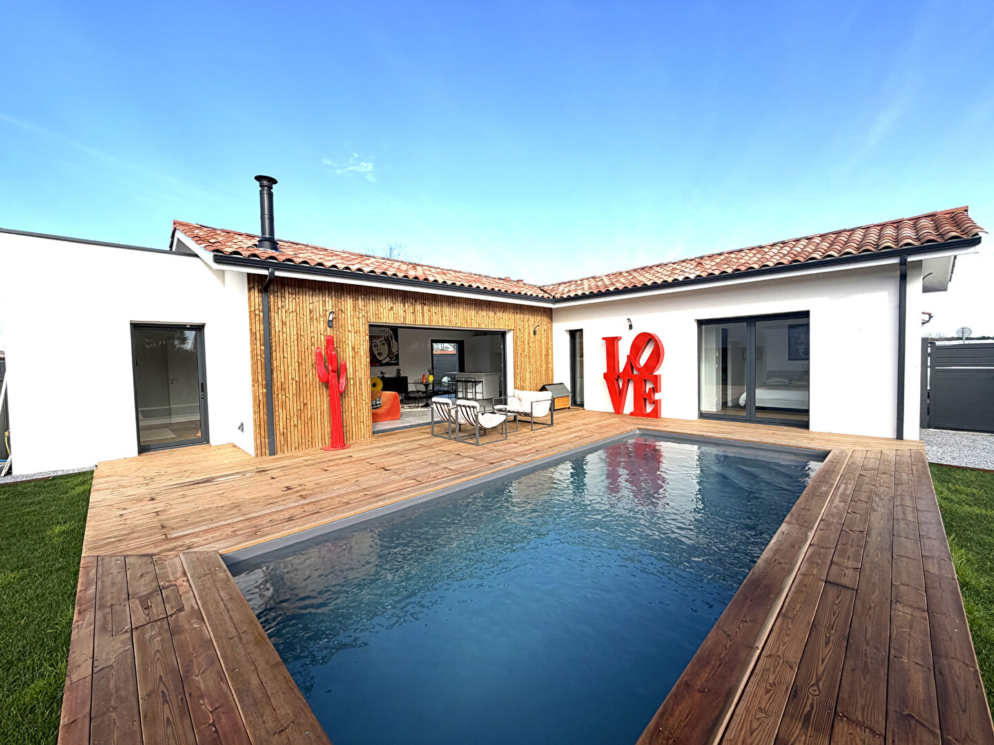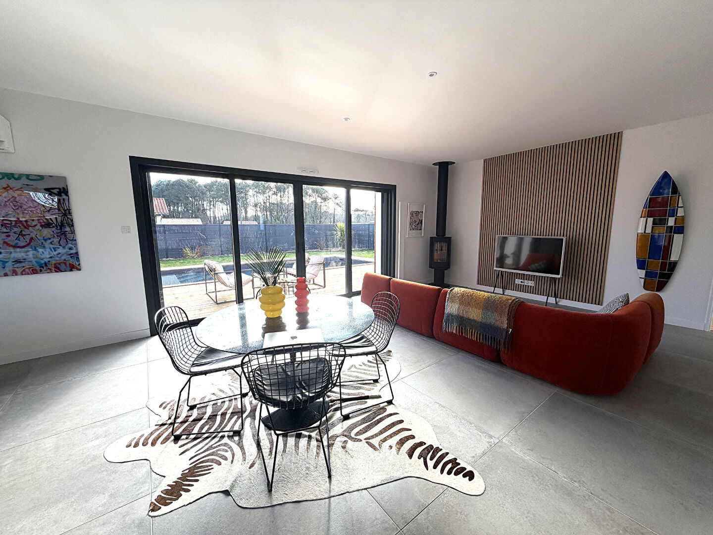 Située à Tosse, à seulement 12 km des plages de Seignosse, cette superbe maison contemporaine d'à peine un an séduit par son architecture moderne, ses volumes généreux et son environnement privilégié, à proximité immédiate du centre-ville et de la forêt. D'une surface d'environ 125 m², la maison s'ouvre sur une entrée avec WC indépendant, puis dévoile une magnifique pièce de vie de plus de 50 m², baignée de lumière grâce à de larges baies vitrées à galandage. Celles-ci prolongent naturellement l'espace vers les terrasses, idéales pour profiter pleinement des beaux jours. La partie nuit est parfaitement pensée : Une suite parentale avec chambre, dressing et salle d'eau privative, Un bureau, idéal pour le télétravail, Un espace dédié aux enfants ou invités comprenant deux chambres, une salle de bains et un WC indépendant. Fonctionnelle et confortable, la maison dispose également d'une buanderie, d'un garage, et s'implante sur un terrain clos accueillant une piscine chauffée, parfaite pour des moments de détente en toute intimité. Maison récente, prestations actuelles, aucun travaux à prévoir : les valises sont à poser. Un bien rare sur le secteur, idéal en résidence principale comme en pied-à-terre sur la côte landaise.