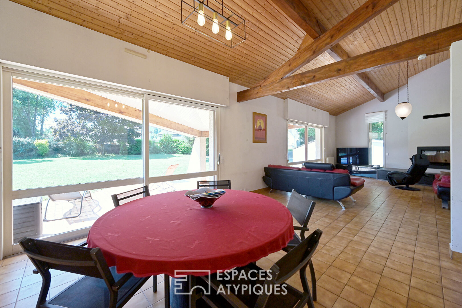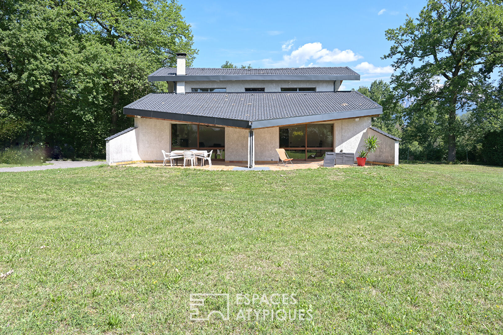 Située à Saint-Baldoph, cette maison d'architecte construite en 1982 développe environ 190 m² habitables sur deux niveaux, au coeur d'un terrain paysager constructible d'environ 2 800 m². Son architecture singulière, ses volumes généreux et ses lignes contemporaines en font un bien rare dans un secteur résidentiel recherché. Une terrasse exposée sud, un garage ainsi qu'un abri complètent l'ensemble. Dès l'entrée, les volumes impressionnent : le séjour cathédrale baigné de lumière naturelle s'ouvre sur l'extérieur grâce à de larges baies vitrées, créant un lien fort entre l'intérieur et le jardin. La cuisine indépendante, conviviale, jouxte un espace salle à manger chaleureux. Une chambre avec point d'eau et une buanderie sont également présentes au rez-de-chaussée. A l'étage, quatre chambres aux beaux volumes, une salle de bains ainsi qu'une lingerie offrent un confort de vie idéal pour une famille. Le terrain, plat, arboré et constructible, constitue un atout exceptionnel dans ce secteur. Il offre de nombreuses possibilités : création d'une piscine, extension ou construction complémentaire, jardin paysager, potager ou aire de jeux. La terrasse extérieure, accessible depuis les pièces principales, prolonge naturellement les espaces de vie en offrant un cadre idéal pour recevoir. A proximité immédiate des écoles, des commerces et des transports, cette maison bénéficie d'un emplacement privilégié, à quelques minutes seulement du centre-ville de Chambéry, dans un environnement calme et verdoyant. Un bien à la personnalité affirmée, à la fois fonctionnel et singulier, dont le potentiel séduira les amateurs d'espaces atypiques en quête d'authenticité et de nature. CLASSE ÉNERGIE : D / CLASSE CLIMAT : B Montant moyen estimé des dépenses annuelles d'énergie pour un usage standard, établi à partir des prix moyens des énergies indexés sur les années 2021, 2022, 2023 : entre 3.400 euros et 4.650 euros. Les informations sur les risques auxquels ce bien est exposé sont disponibles sur le site Géorisques : www.georisques.gouv.fr Contact : Eric +33 6 63 90 01 80