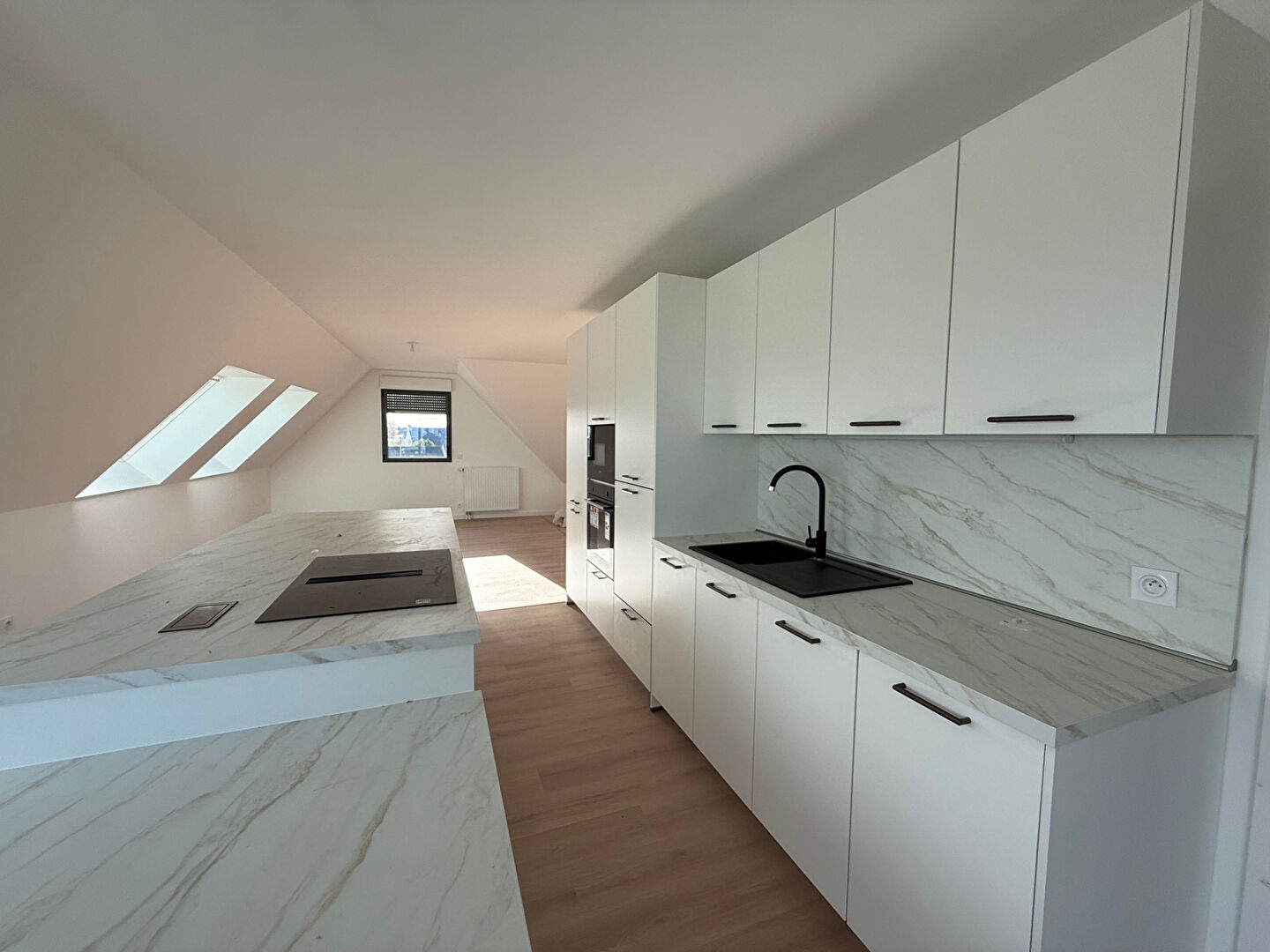 A LOUER LANGUEUX CENTRE - Appartement T4 neuf de 124m² comprenant une entrée avec placard, une grande pièce de vie donnant sur une terrasse, une cuisine équipée, une buanderie entièrement aménagée. Un dégagement avec placards, 2 chambres, une salle de douche avec WC, une suite parentale avec salle d'eau. Deux places de stationnement. Chauffage gaz de ville. TRES BEAUX VOLUMES, LUNIMEUX, Belles Prestations.