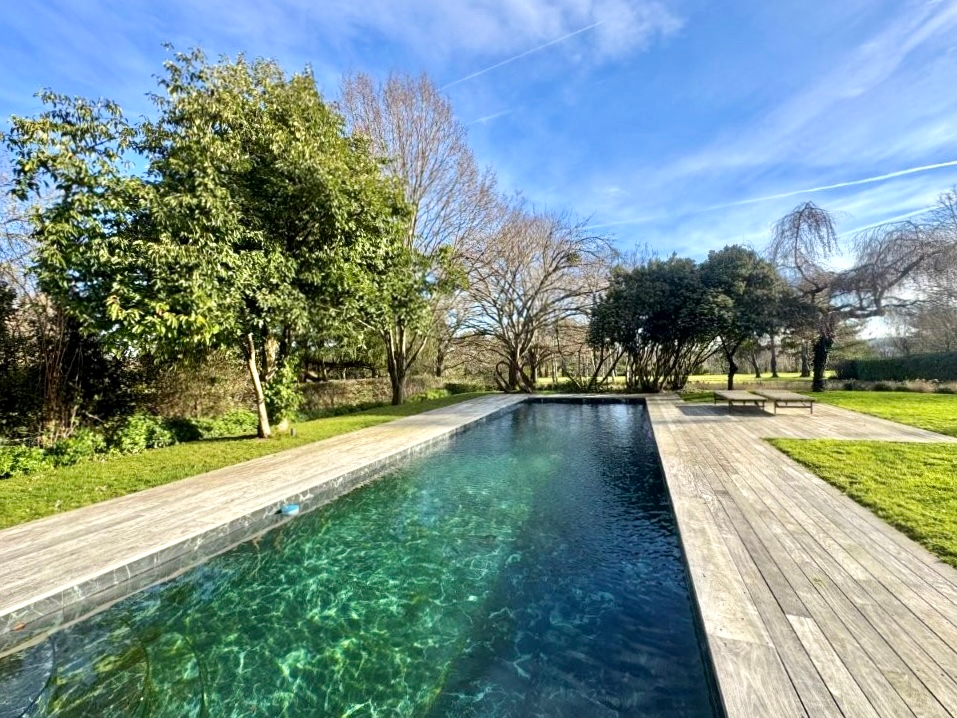 Saint Nom la Bretèche, adresse recherchée de l'Ouest Parisien. Sur le parcours du prestigieux Golf de Saint Nom la Bretèche, dans la partie la plus sécurisée du domaine, avec gardiens 24h/24h, 7/7, rondiers et vidéo surveillance. Nous proposons à la vente, une maison entièrement rénovée de 404 m2 environ plus sous-sol aménagé. Cette maison d'esprit Hampton qui rompt avec les standards Ile de France est implantée sur une parcelle de 4.115 m 2 plein Sud et sans vis-à-vis avec piscine de 14 M X 4 M et de vastes terrasses. Une maison pleine de charme ou il règne comme un air de vacances, de larges baies vitrées laissent généreusement entrer la lumière . Entrée et réception aux volumes XXL, cuisine dinatoire ouverte sur la salle à manger, mais aussi deux suites en rdc avec douches/wc, une buanderie, wc invités. L'étage dessert une suite parentale avec salon privatif, terrasse avec vue sur le Golf, chambre, dressing, salle de bains, complétée de deux autres suites avec bains, wc. Au sous-sol vous découvrirez : Une salle de sport, avec cour anglaise, des pièces de stockage. Chaufferie : chaudière neuve, cave à vins. Un garage double complète ce bien au confort exceptionnel comme en témoigne son magnifique DPE en C. La Rénovation est de grande qualité, la décoration raffinée, les matériaux sont nobles : Bois, marbre, zelliges, béton ciré.... Proche accès A 13, Ramassage scolaire pour les collège et Lycées de secteur ainsi que pour le Lycée International de Saint Germain en laye. Bus pour Versailles, navettes pour la gare de Saint Nom et le tram 13 à l'entrée du domaine. Crèches, écoles maternelle et primaire, conservatoire de musique dans le village. Prix incluant 3.13 % d'honoraires charge acquéreur (3.13 % honoraires TTC à la charge de l'acquéreur.) Copropriété de 130 lots.