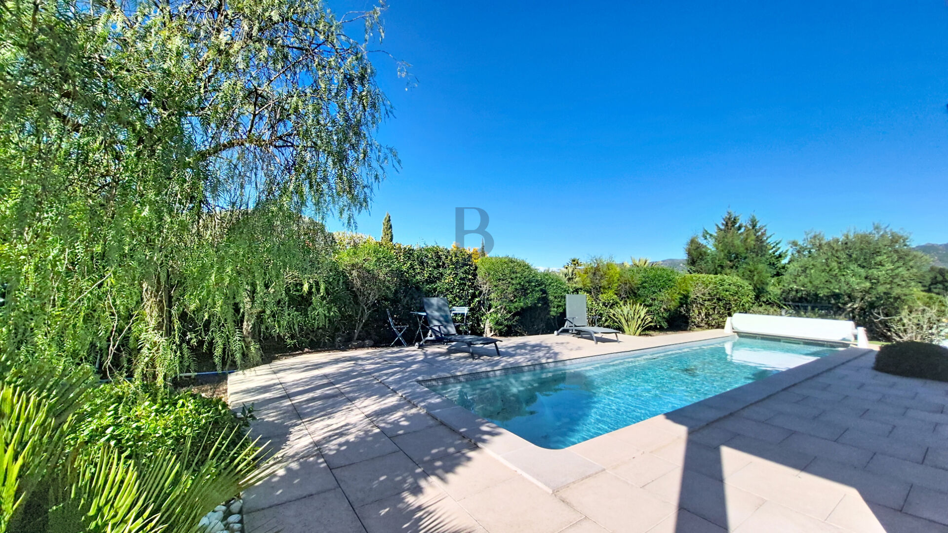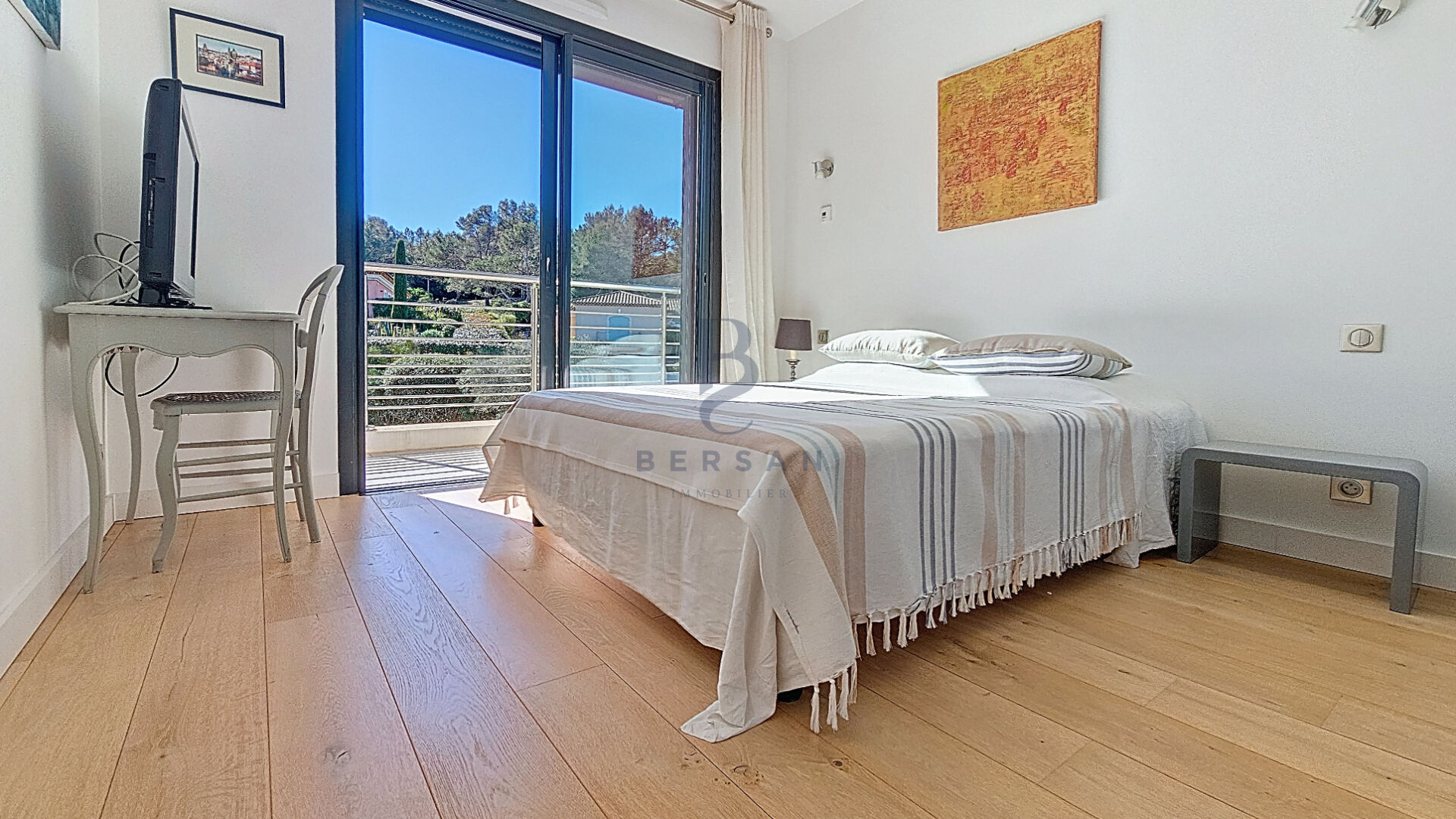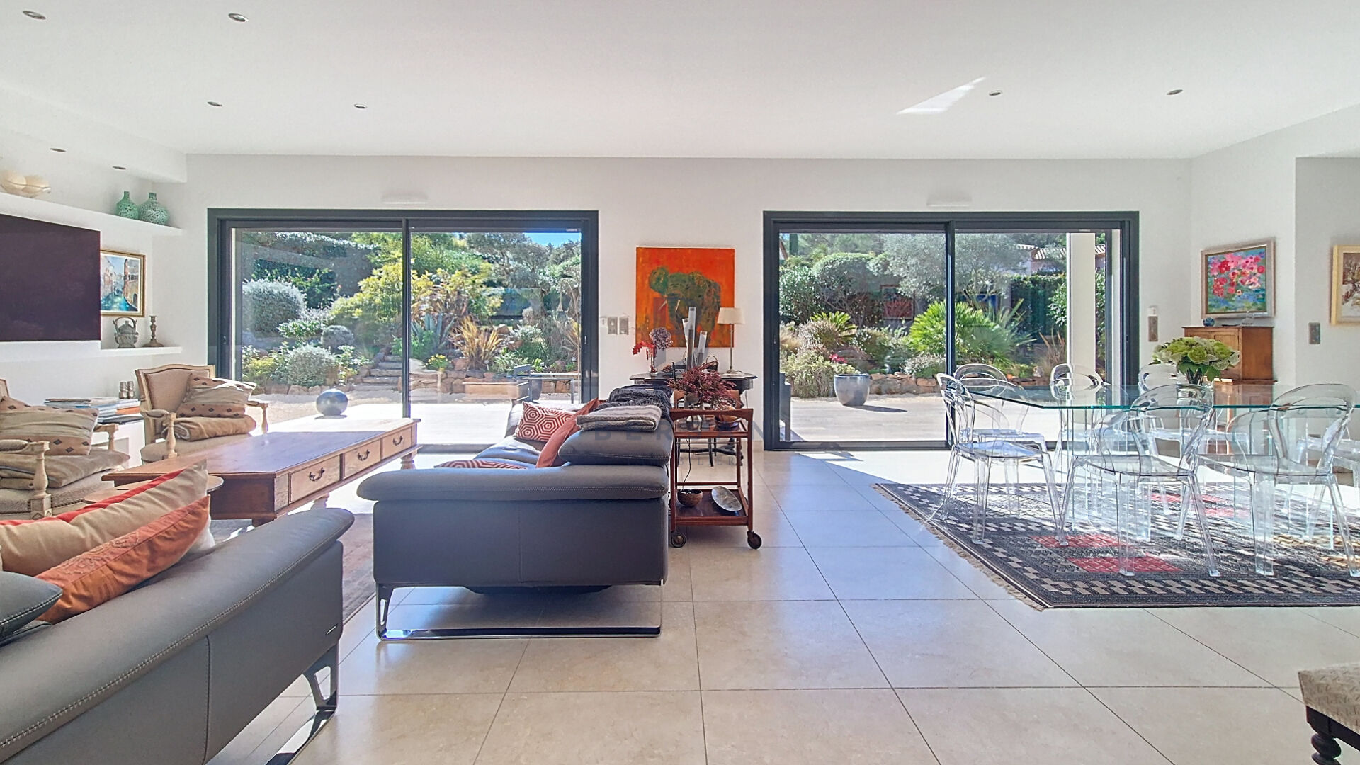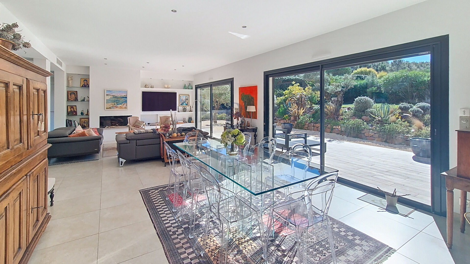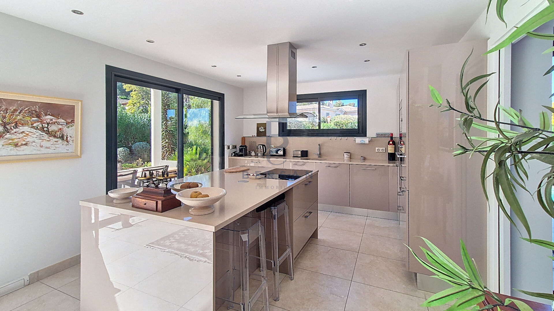 BERSAN Immobilier vous propose cette magnifique villa contemporaine située dans un domaine fermé et recherché, à proximité immédiate des golfs et à pied des commerces Implantée dans un environnement résidentiel d'exception, cette propriété bénéficie d'une position dominante, d'une vue dégagée sans vis-à-vis et d'un cadre de vie privilégié entre nature et élégance. Pour tout complément ou pour organiser une visite, contactez votre agence BERSAN Immobilier, spécialiste du secteur de Valescure ? Saint-Raphaël. Dès l'entrée, vous découvrez un vaste espace de réception traversant, baigné de lumière grâce à de larges baies vitrées, prolongé par une cuisine ouverte moderne parfaitement aménagée et une arrière-cuisine avec accès direct au garage Les volumes sont maîtrisés, les circulations fluides et l'ensemble s'ouvre harmonieusement sur l'extérieur et les terrasses Le rez-de-chaussée accueille également une spacieuse suite parentale avec dressing, salle d'eau et toilettes, ainsi qu'un bureau. A l'étage, un palier confortable dessert trois chambres avec rangements, une salle de bains et une agréable pièce de type véranda offrant un espace détente. Le terrain paysager soigneusement aménagé propose une piscine chauffée, un espace convivial pour recevoir, un espace d'entraînement pour les amateurs de golf Un garage spacieux, de nombreux rangements et des stationnements complètent l'ensemble Une villa en parfait état, prête à accueillir ses nouveaux propriétaires, pensée pour un art de vivre confortable et raffiné dans l'un des secteurs les plus recherchés de Valescure. Pour tout complément ou pour organiser une visite, contactez votre agence BERSAN Immobilier, spécialiste du secteur de Valescure ? Saint-Raphaël