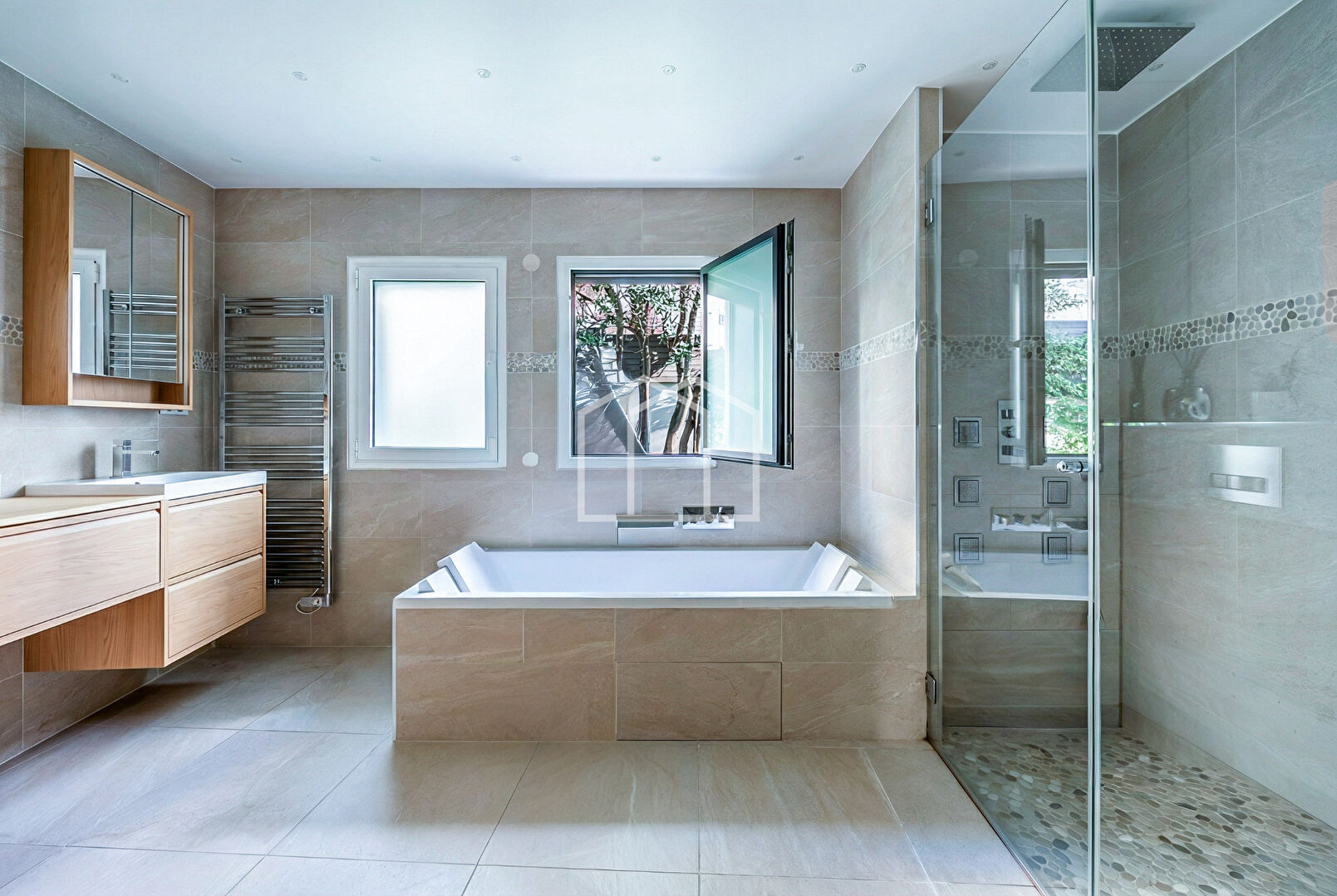 L'agence VILLA d'OUEST a le plaisir de vous présenter en EXCLUSIVITE cette superbe maison indépendante de 190 m², édifiée sur un terrain de 340 m², idéalement située dans le très recherché quartier du Parc du Château. Répartie sur trois niveaux, la maison séduit dès l'entrée par ses volumes et sa luminosité. Le niveau principal accueille un vaste espace de vie de plus de 70 m², composé d'un séjour ouvert sur la salle à manger et d'une grande cuisine aux prestations haut de gamme, parfaitement intégrée. Dans le prolongement, une agréable terrasse, idéalement exposée, invite à la détente. En rez-de-jardin, vous découvrirez une exceptionnelle suite parentale, offrant un dressing spacieux et une salle de bains élégante, véritable espace privé et intime. A l'étage, l'espace nuit enfants se compose de trois belles chambres et d'une salle de bains. Un grand garage ainsi que deux places de stationnement extérieures complètent ce bien. Non mitoyenne, la maison bénéficie d'un jardin paysagé, parfaitement entretenu, au calme absolu et bénéficiant d'une excellente exposition. Ses atouts : Secteur recherché et sectorisation scolaire idéale. Proximité immédiate des écoles, transports et du centre-ville. Prestations haut de gamme. Climatisation. Aucun travaux à prévoir Un bien rare sur le secteur, idéal pour une famille à la recherche d'un cadre de vie confortable, verdoyant et privilégié, aux portes de Paris. (3.74 % honoraires TTC à la charge de l'acquéreur.)