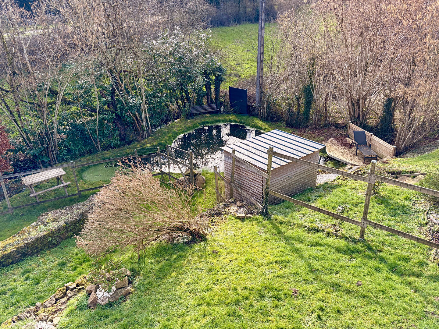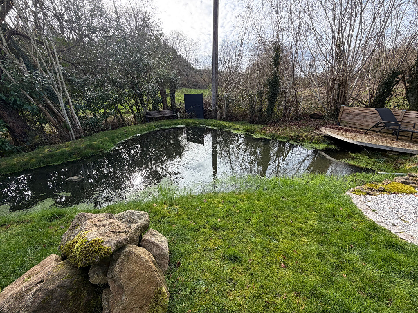 Située en périphérie de Saint-Denis-sur-Sarthon, cette charmante maison en pierre séduira les amateurs d'authenticité et de calme, tout en restant à proximité des commodités. Le rez-de-chaussée se compose d'une cuisine aménagée et équipée, d'un agréable séjour-salon agrémenté d'un insert bois, offrant une atmosphère chaleureuse, ainsi que d'une chambre et d'une salle de bains avec toilettes. A l'étage, une mezzanine ouverte apporte volume et luminosité, desservant une chambre ainsi qu'une suite parentale bénéficiant de sa salle de douche privative et d'un balcon, idéal pour profiter de la vue sur le jardin. Les extérieurs complètent harmonieusement ce bien avec un grand double garage équipé de portes motorisées, de nombreuses dépendances offrant de multiples possibilités d'aménagement, ainsi qu'une cave à vin.Le tout est implanté sur un terrain clos et arboré de 1 868 m², agrémenté d'une charmante mare d'agrément avec son petit chalet, créant un cadre verdoyant et apaisant. Un portail motorisé vient parfaire les prestations de cette propriété. Un bien de caractère, rare sur le secteur, idéal pour une résidence principale ou secondaire, au coeur d'un environnement privilégié. (4.99 % honoraires TTC à la charge de l'acquéreur.)