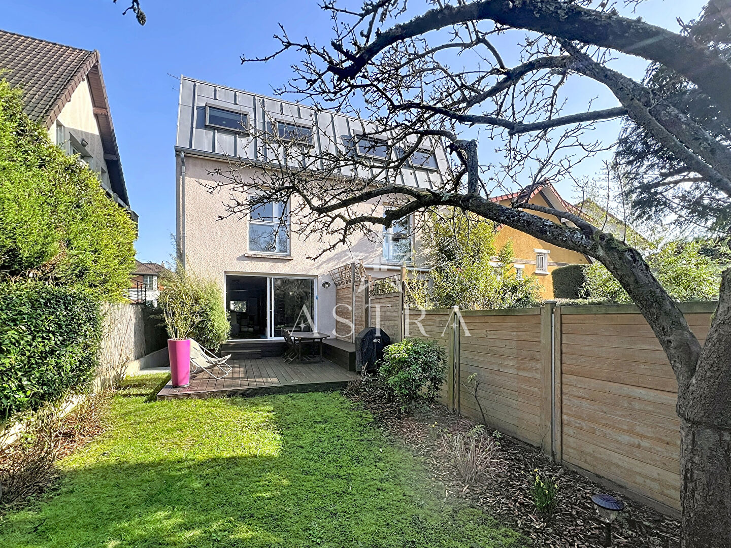 Antony, Domaine du Parc de Sceaux à 7 min à pied du RER B Croix de Berny A proximité immédiate du Parc de Sceaux, des transports et des établissements scolaires réputés, Astra Immobilier vous propose cette maison familiale moderne construite en 1990, développant 185 m² habitables. La pièce de vie traversante Est/Ouest de 57 m² s'ouvre directement sur la terrasse et le jardin exposé Ouest,. La cuisine ouverte, aménagée et équipée, prolonge cet espace convivial et contemporain. Sur 2 niveaux: 5 chambres, parmi lesquelles une suite parentale d'environ 20 m² avec dressing. Une salle de bains avec balnéothérapie ainsi que deux salles d'eau complètent l'ensemble. Sous-sol total. Sectorisation recherchée : Collège La Fontaine ,Lycée Lakanal. Une maison moderne aux volumes généreux, alliant cadre résidentiel privilégié, proximité du RER B et qualité scolaire reconnue. Contactez Astra Immobilier Sceaux / Antony pour organiser une visite. (1.78 % honoraires TTC à la charge de l'acquéreur.) Copropriété de 2 lots - dont 2 lots habitation.