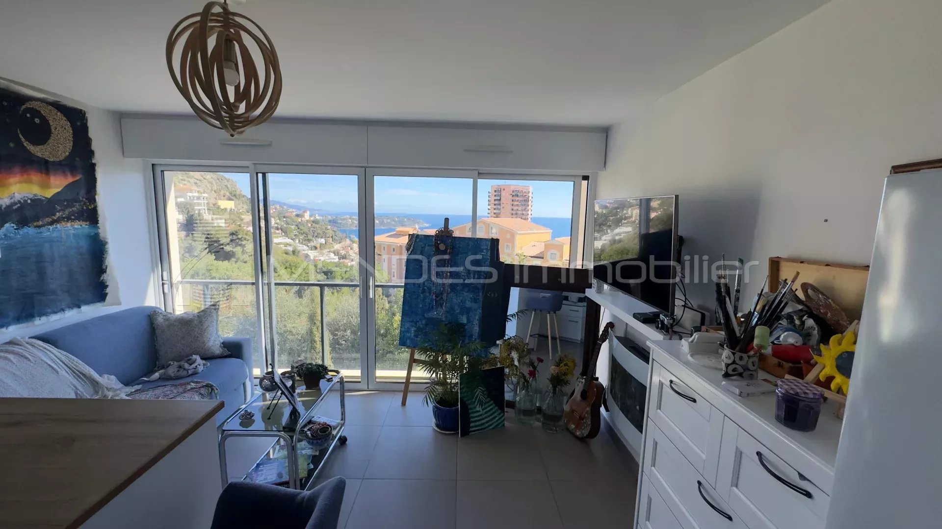 Monolocale superbamente arredato con vista mare aperta in una residenza di alto standing recente con piscina e sala fitness completamente attrezzato arredato e climatizzato situato a Beausoleil alle porte di Monaco esposto a sud e in assoluta tranquillità con bagno doccia e WC ampio soggiorno con comodo divano letto progettato per uso quotidiano cucina integrata completamente attrezzata con elettrodomestici di alta gamma