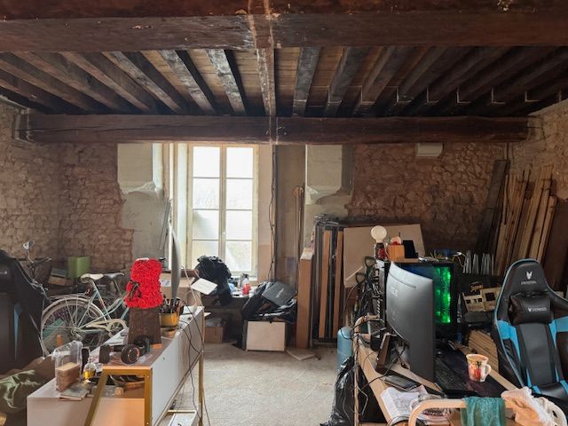 plafond à la française, cheminée ancienne, pierre apparente par endroit, je suis atypique, et pour couronner le tout, un jardin (1200m2) avec puits (raccordé à la cave) est là, avec une vue sur un magnifique pigeonnier et sur les champs.