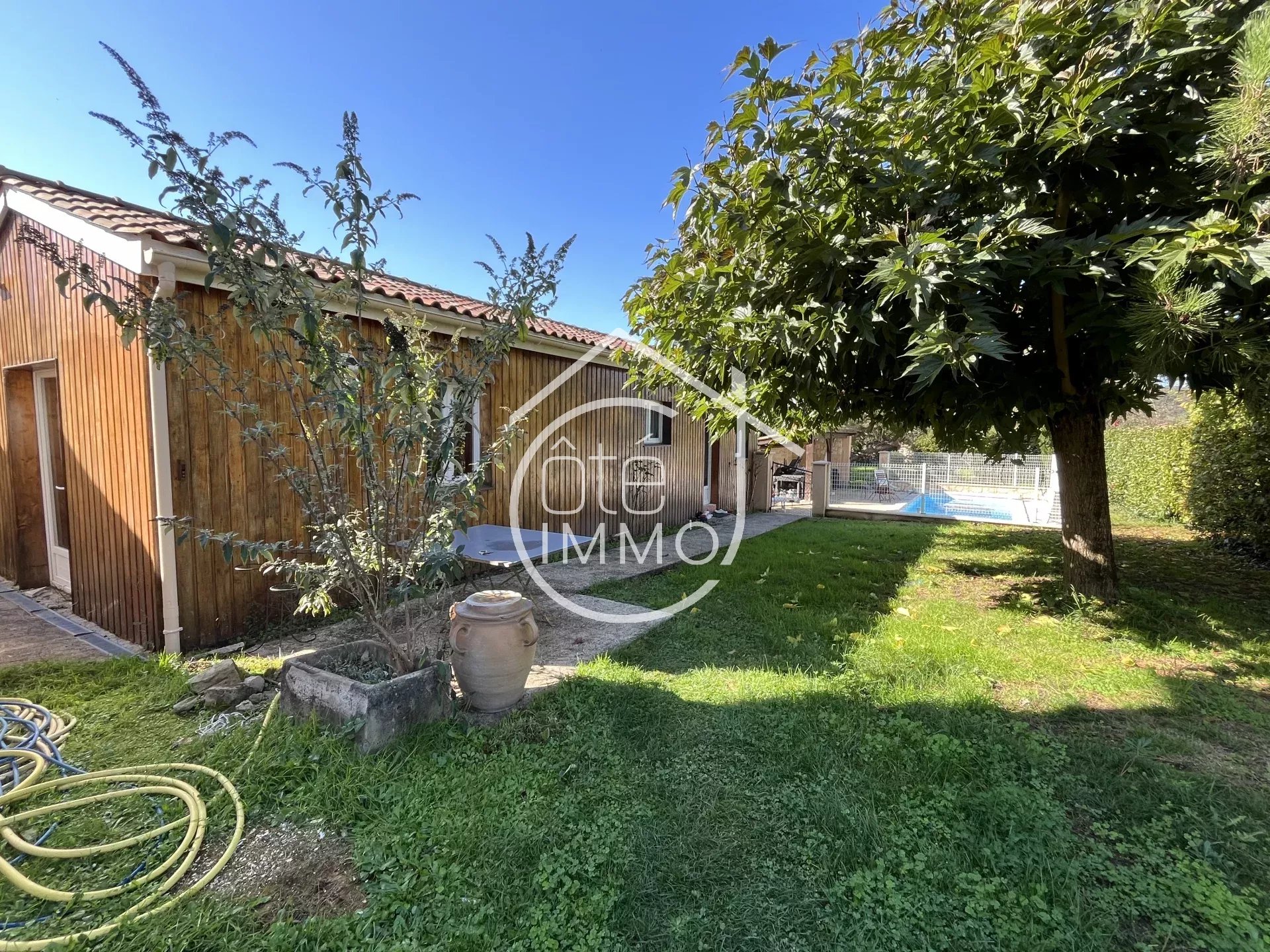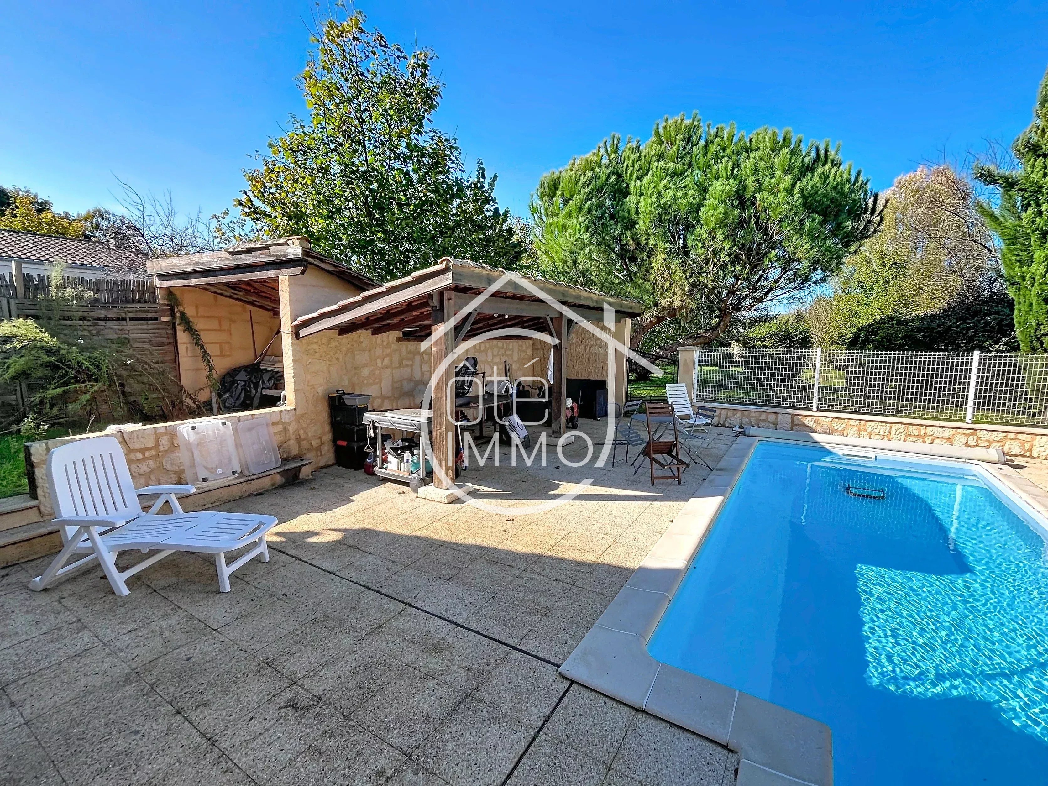Côté Immo PRIGONRIEUX vous invite à découvrir cette charmante propriété située à proximité du centre-ville de Bergerac, dans un secteur recherché. Idéale pour une famille ou pour un investissement locatif, elle se compose de deux logements indépendants, édifiés sur un magnifique terrain arboré avec piscine. Description du bien principal (78m² habitables) Au rez-de-chaussée : Un séjour lumineux de 24m² ouvert sur une cuisine équipée de 9m². Côté nuit, une chambre de 14,5m² avec sa salle de bains attenante de 9m² (douche et baignoire). À l'étage : Une chambre de 13,5m², des toilettes séparées et un grand grenier offrant une belle capacité de stockage. Annexe (49m² habitables) Entièrement rénovée avec un bardage bois, cette annexe est idéale pour un investissement locatif (à l'année ou saisonnier) ou comme logement d'appoint pour les invités. Elle se compose d'un spacieux séjour avec cuisine ouverte entièrement équipée de 26m², d'une chambre de 14m² ainsi que d'une salle d'eau avec WC. A noter que l'annexe est équipée de son propre compteur électrique Extérieurs Vous serez séduit par le très beau jardin de 1360m², clos et arboré. L'espace piscine, avec sa terrasse et son pool house couvert, invite à la détente et à la relaxation durant la belle saison. Cet ensemble immobilier combine fonctionnalite, confort et polyvalence, ideal pour une famille a la recherche d'un cadre de vie agreable ou d'une opportunite de rentabilite locative. À découvrir sans tarder. Points techniques : - Chaudière au gaz à condensation - PAC air/air 2023 - Double vitrage PVC - Tout à l'égout - VMC - Puits - Vide sanitaire