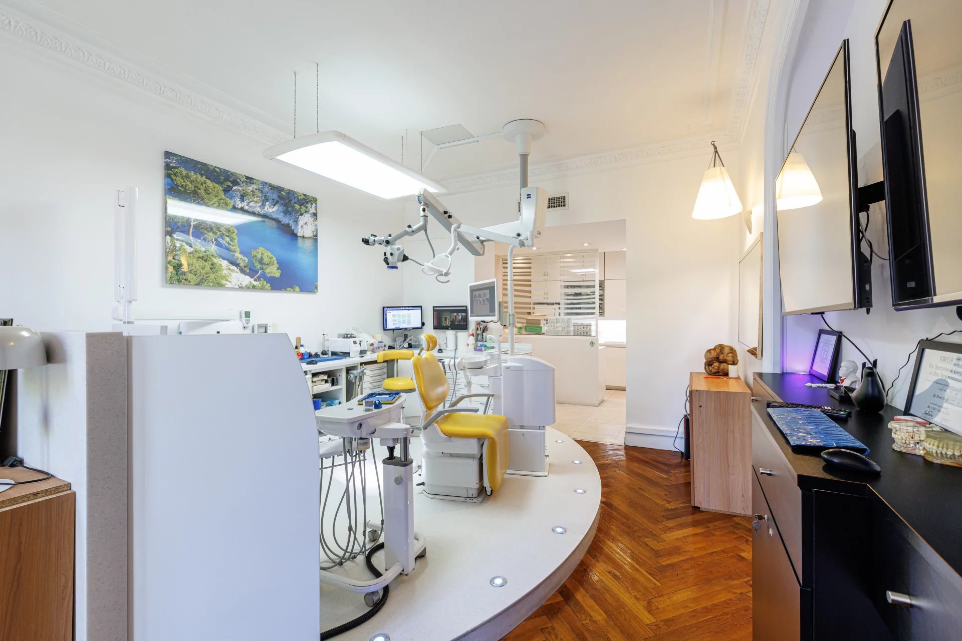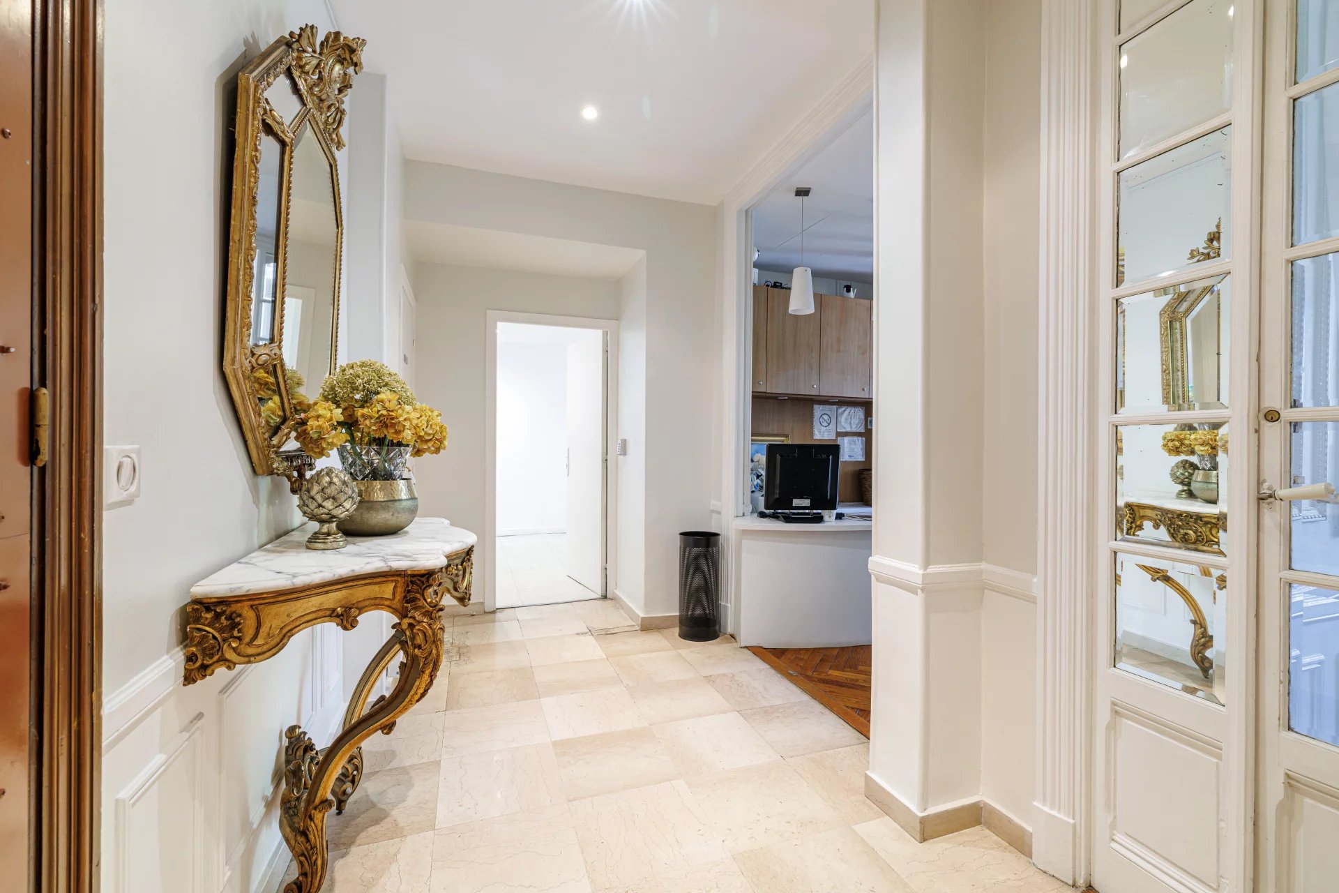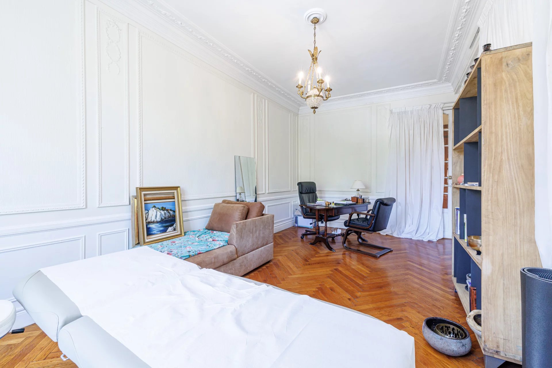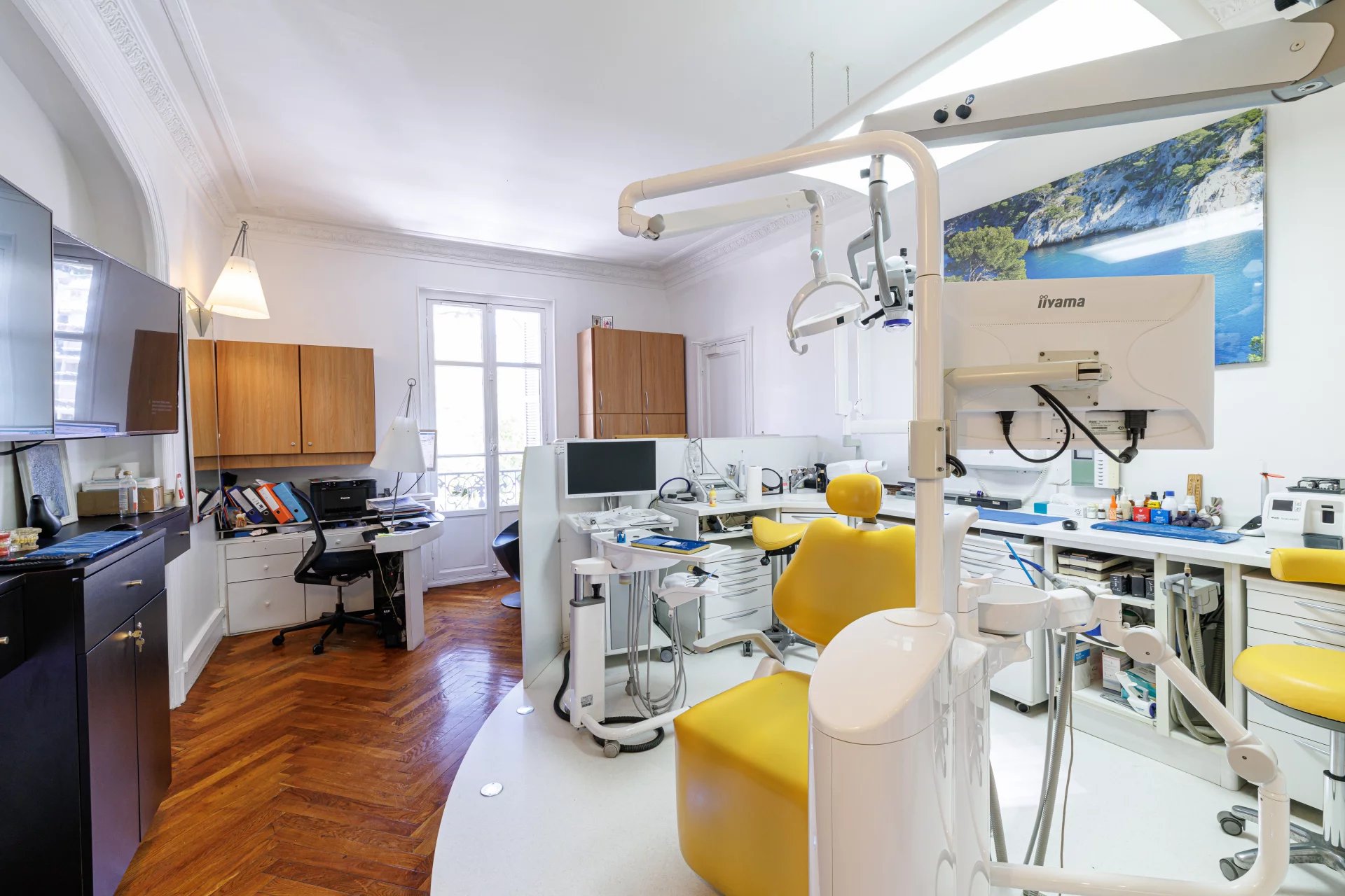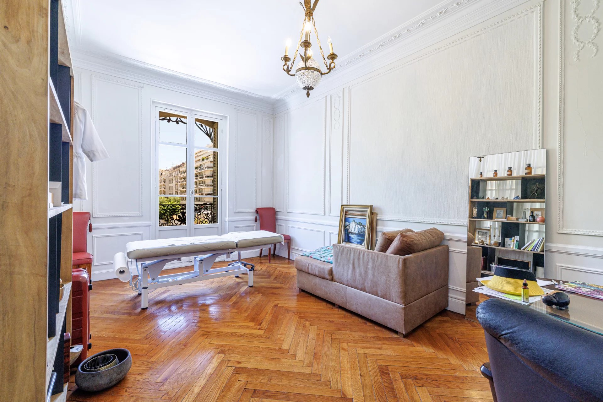 Place Mozart, Dans un Superbe Palais Bourgeois du début du Siècle, appartement actuellement aménagé en Cabinet Médical d'environ 107m2 comprenant: Un hall d'entrée, Une pièce d'accueil ouvrant sur une salle d'attente, Une première salle de soin aménagée en bureau d'environ 22m2, Un second bureau aménagé comprenant également un espace ouvert offrant un espace de vie d'environ 50m2, Une cuisine donnant sur l'arrière cour. Toilettes séparés. Vous serez sous le charme de ce bien de caractère ayant préservé le charme de l'ancien: nombreuses moulures sur les murs et plafonds, parquet en bâtons rompus L'ensemble est climatisé et chaque pièce ouvre sur la Place Mozart. Vendu avec une cave au sous-sol et une chambre de onne de 10m2 en dernier étage. Charges: 1560€/an Taxe foncière: nc€ Aucune procédure en cours dans la copropriété à notre connaissance Honoraires charge vendeur. Surface Carrez 106,4 m² - DPE: 186/5 Les informations sur les risques auxquels ce bien est exposé sont disponibles sur le site Géorisques http://georisques.gouv.fr