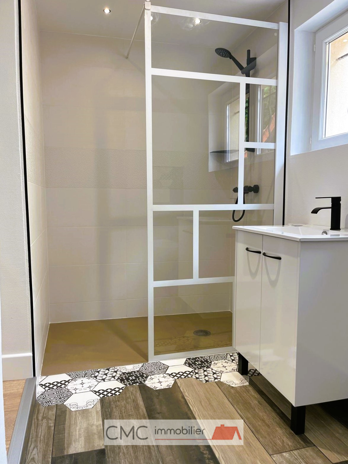 Au pied des commerces, venez découvrir cette charmante maison entièrement rénovée avec des matériaux de qualité. Elle se compose d'un séjour / salle à manger avec cuisine ouverte, aménagée et équipée, d'une chambre, d'une salle d'eau avec WC, ainsi que d'un espace buanderie. À l'étage, vous trouverez une seconde chambre. À l'extérieur, profitez d'une superbe terrasse en pavés de rue de 63 m2, idéale pour vos moments de convivialité et vos barbecues. Elle mérite votre visite : vous n'aurez plus qu'à poser vos valises !