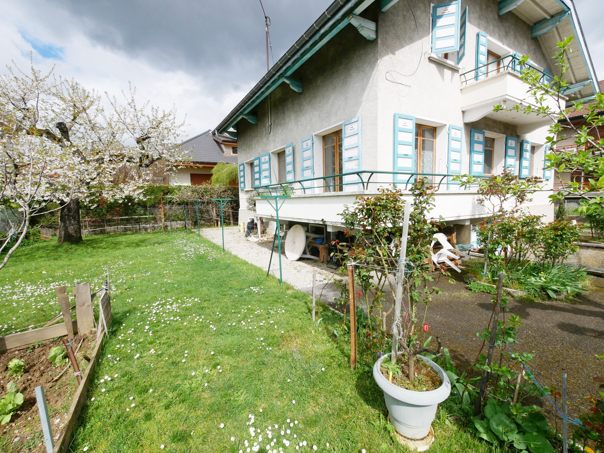 Nous vous proposons à la location cet appartement de type 4, situé à Cran-Gevrier, à quelques minutes seulement de l'hyper-centre d'Annecy, situé au premier étage d'une maison divisée en deux appartements. Il se compose comme suit : un hall d'entrée, un séjour ouvrant sur un balcon, une cuisine séparée et équipée, trois chambres, une salle de bain, une buanderie et un wc indépendant.