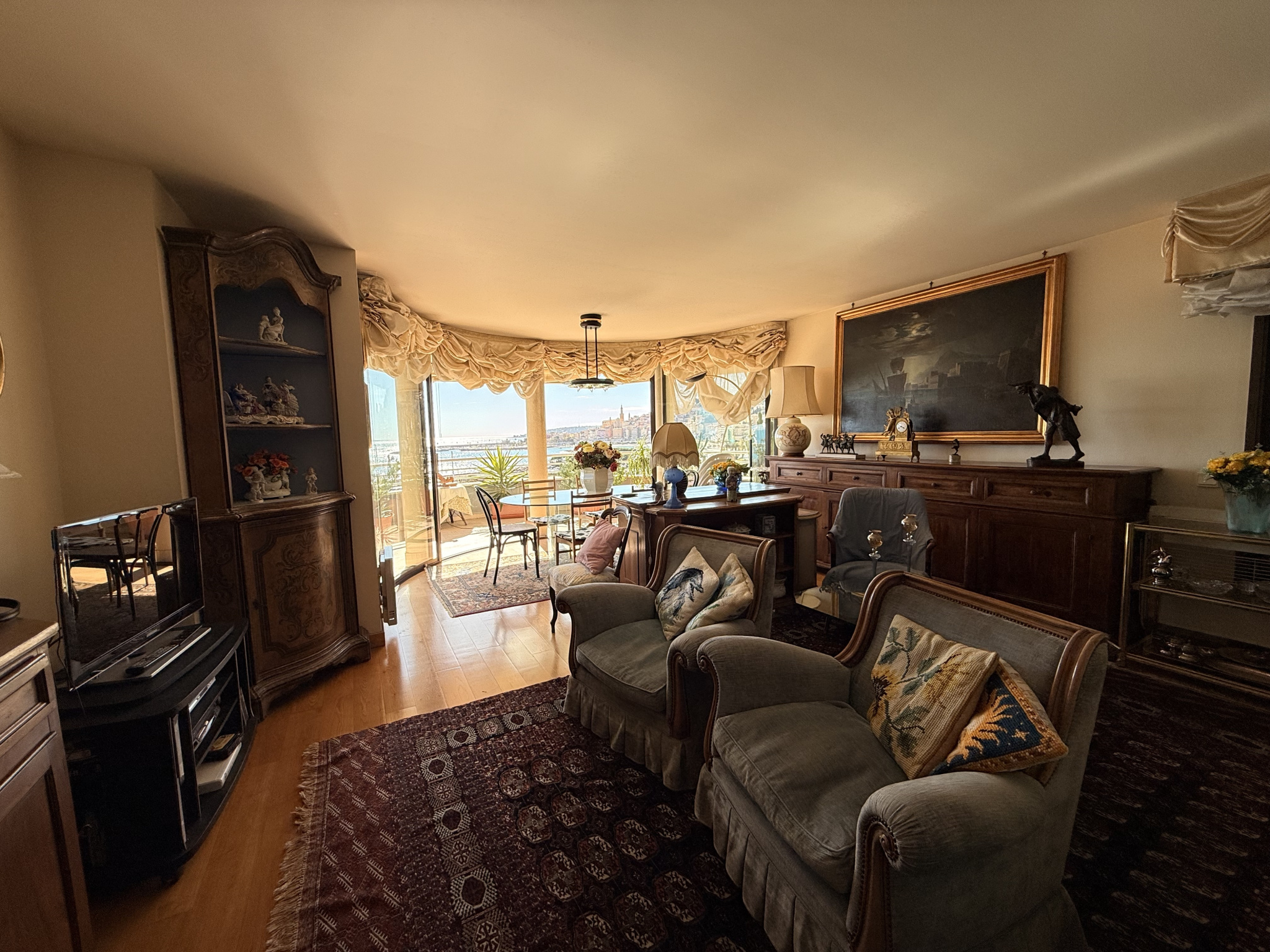 Côté jour, la pièce de vie principale consiste en un séjour, salle à manger de 32m2 qui se prolonge vers une terrasse, idéale pour profiter de la douceur du climat de la Riviera. Vous serez happé par cette vue époustouflante balayant la mer d'Est en Ouest. Une vraie carte postale du port de Menton et de la vieille ville.