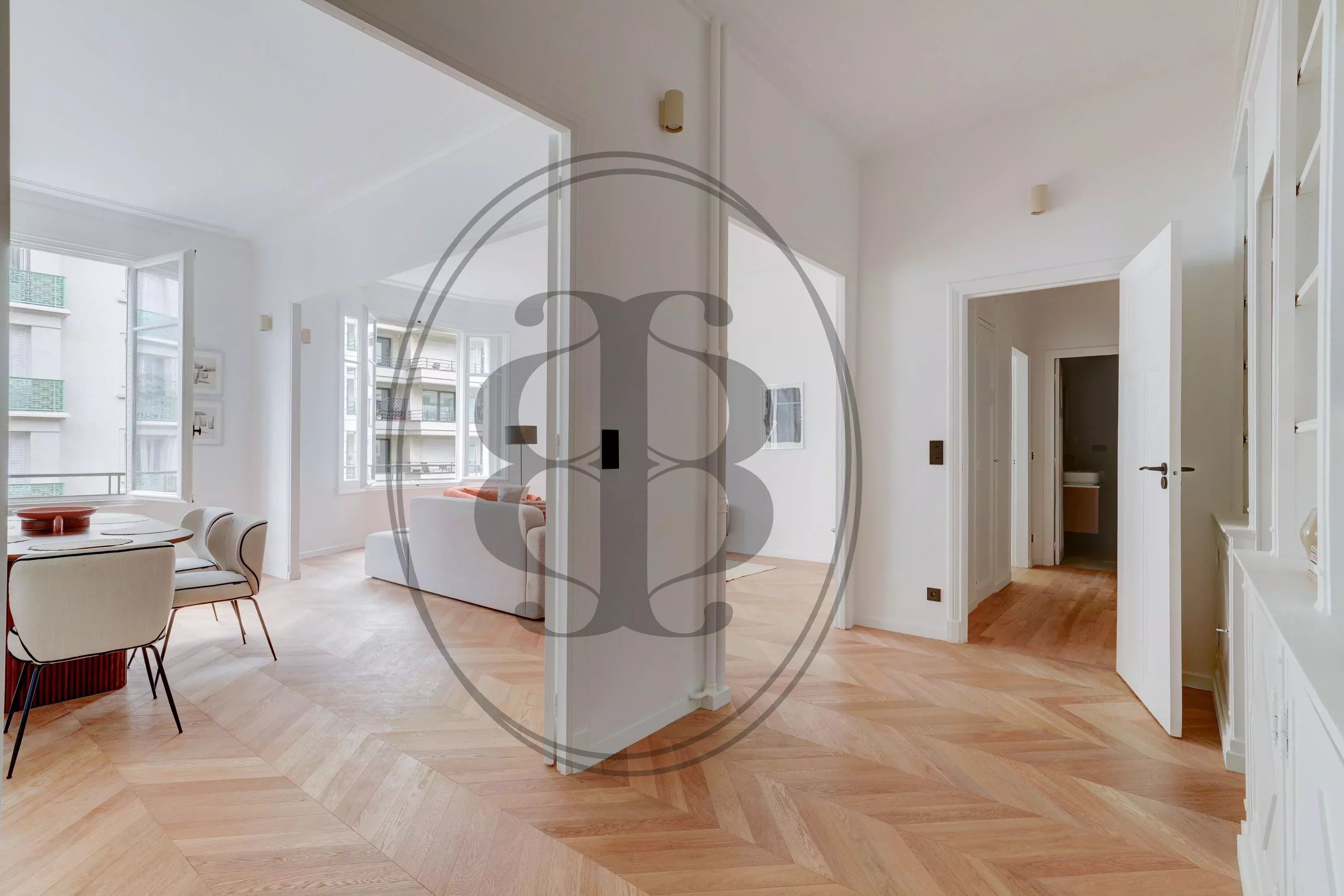 Situé à proximité immédiate du Parc de Passy, cet appartement rénové avec soin, se trouve au troisième étage d’un immeuble de caractère, gardienné, construit dans les années 1930. Il offre un cadre de vie élégant grâce à ses volumes généreux, ses 3m10 de hauteur sous plafond ainsi que sa distribution fluide, qui favorisent à la fois la luminosité et le confort au quotidien. La vaste galerie d'entrée distribue un bel espace réception et une cuisine indépendante entièrement équipée. La partie nuit accueille trois chambres, au calme, accompagnées d’une salle de bains avec douche et toilettes, une salle de douche et des toilettes séparées. De nombreux rangements intégrés optimisent l’organisation intérieure. Cet appartement "clé en mains" est proposé avec une cave.