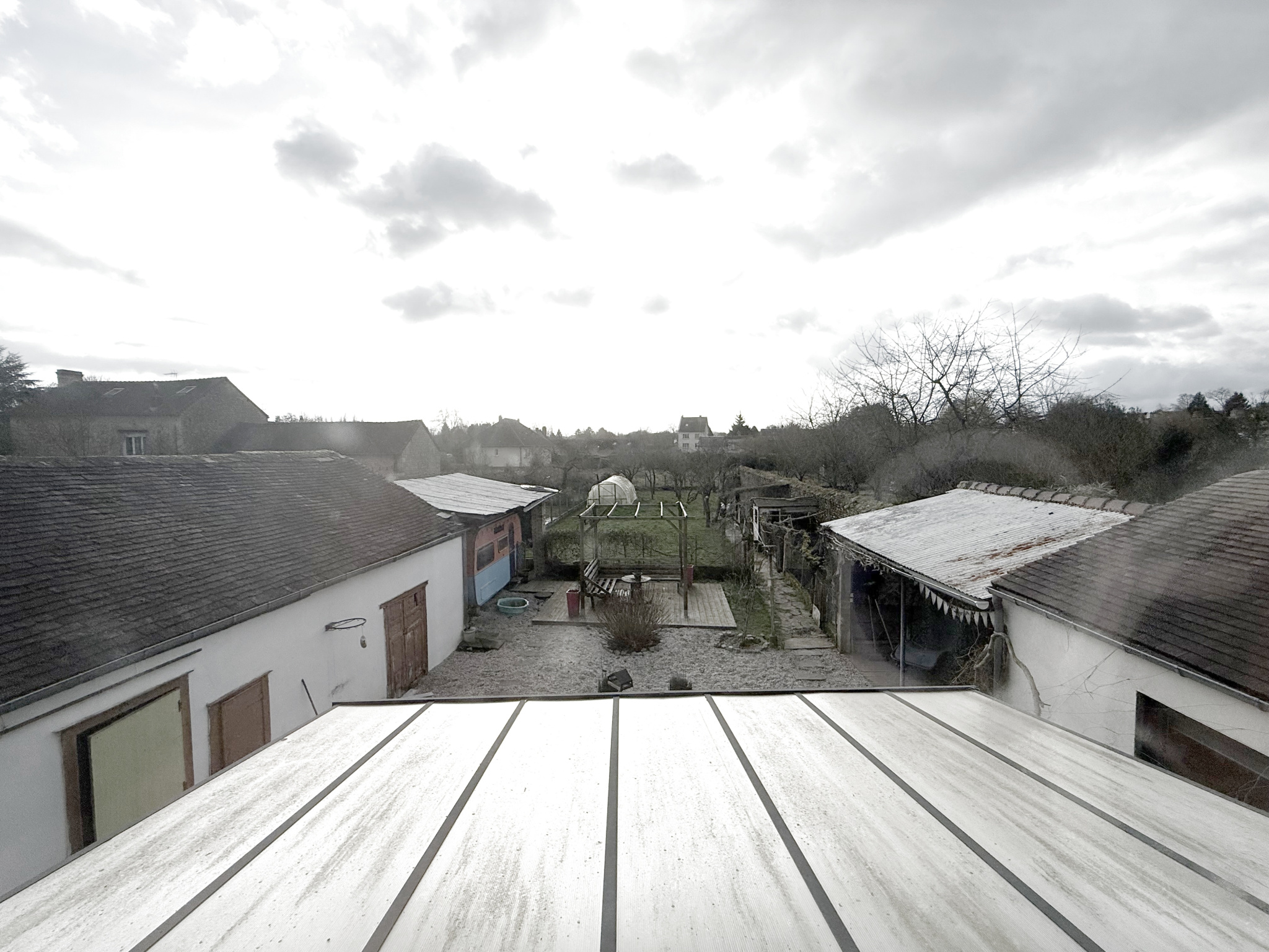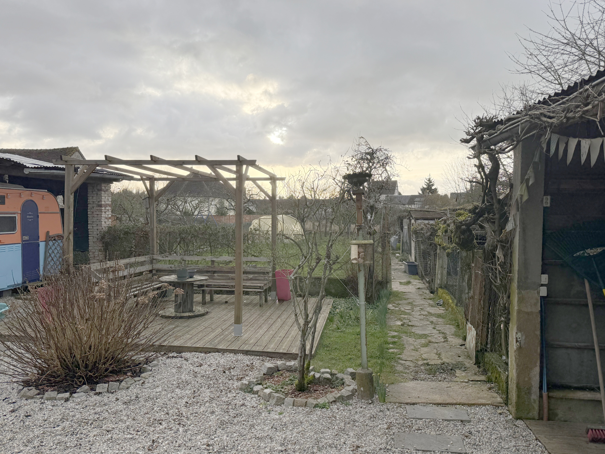 L'ensemble est édifié sur un terrain de 773 m2, offrant un grand jardin agréable. Un garage, trois petites dépendances et un préau. Une terrasse de 20 m2 avec une pergola.