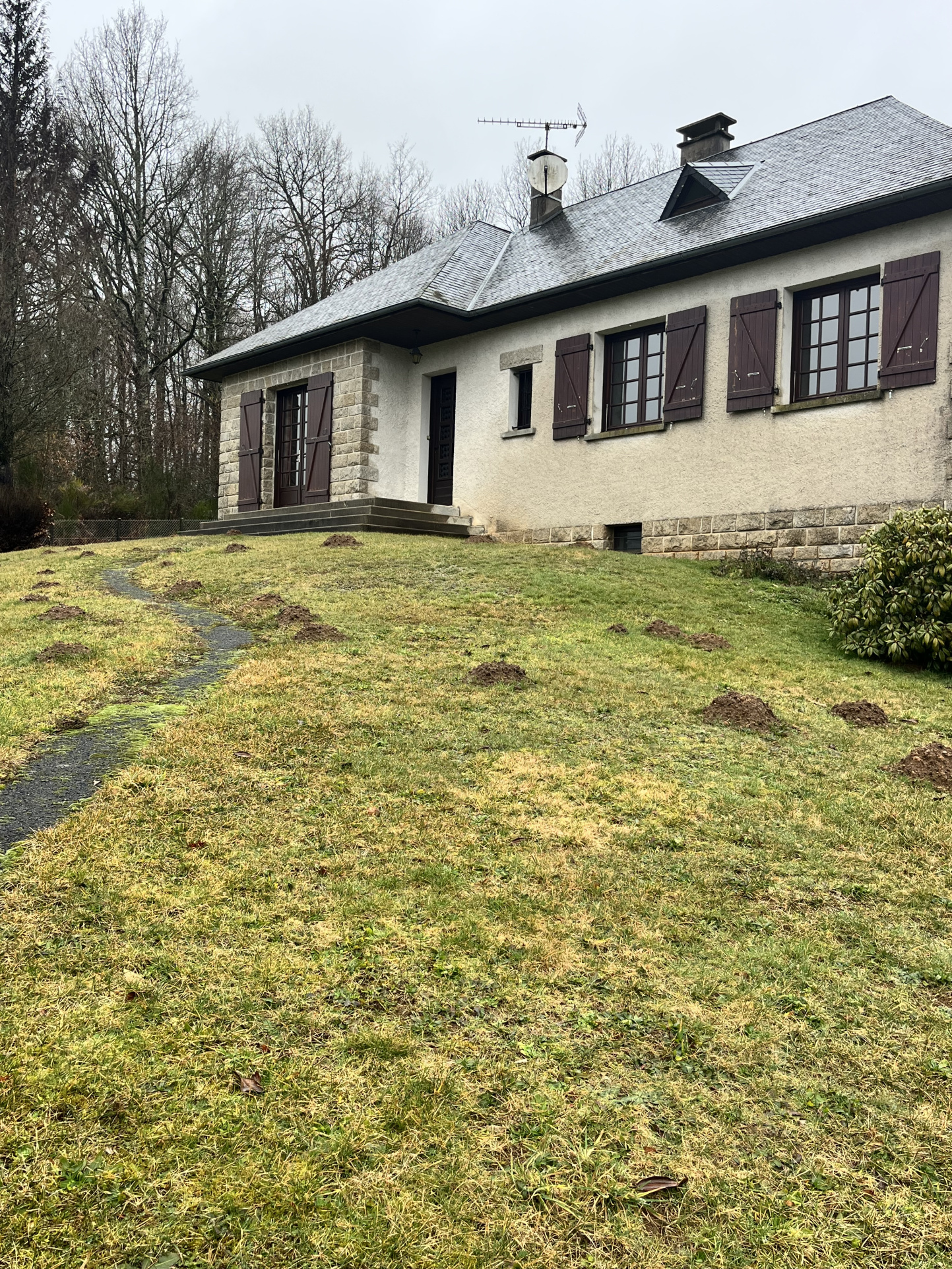 A vendre à 2Kms du bourg de Chamberet, à la campagne, dans un parc de 2593 m2 entièrement clôturé, très belle maison construite avec des matériaux de qualité, couverte en ardoises d'Espagne, charpente traditionnelle, sous-sol en béton banché et comprenant :
