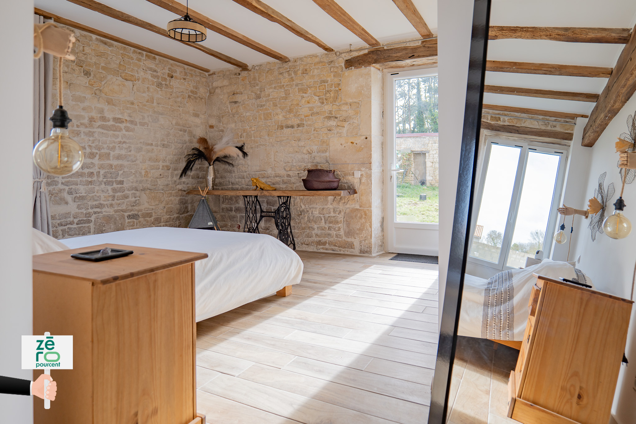 La maison principale 218 m2 habitables : Cette longère en pierre pleine de charme offre de très beaux volumes et un cadre de vie authentique :