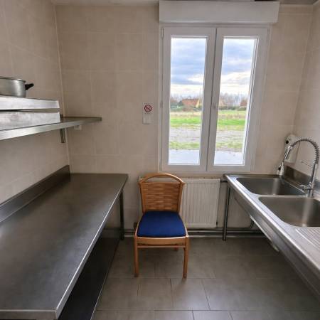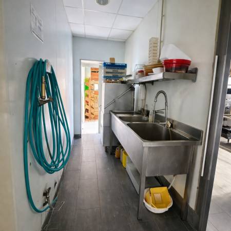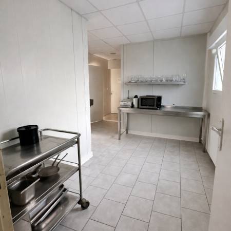 Le bien se compose au rez-de-chaussée d'une salle de restaurant d'environ 55 m², d'un bar bénéficiant d'une Licence IV, ainsi que d'une cuisine professionnelle en parfait état, entièrement équipée et immédiatement exploitable. L'organisation des espaces a été pensée pour une exploitation efficace avec plusieurs zones techniques dédiées : espace épluchage, laverie, réserves, chambres froides et cave. Une activité de friterie complète l'offre et permet de diversifier la clientèle ainsi que les sources de chiffre d'affaires. Les sanitaires clients sont présents et fonctionnels.