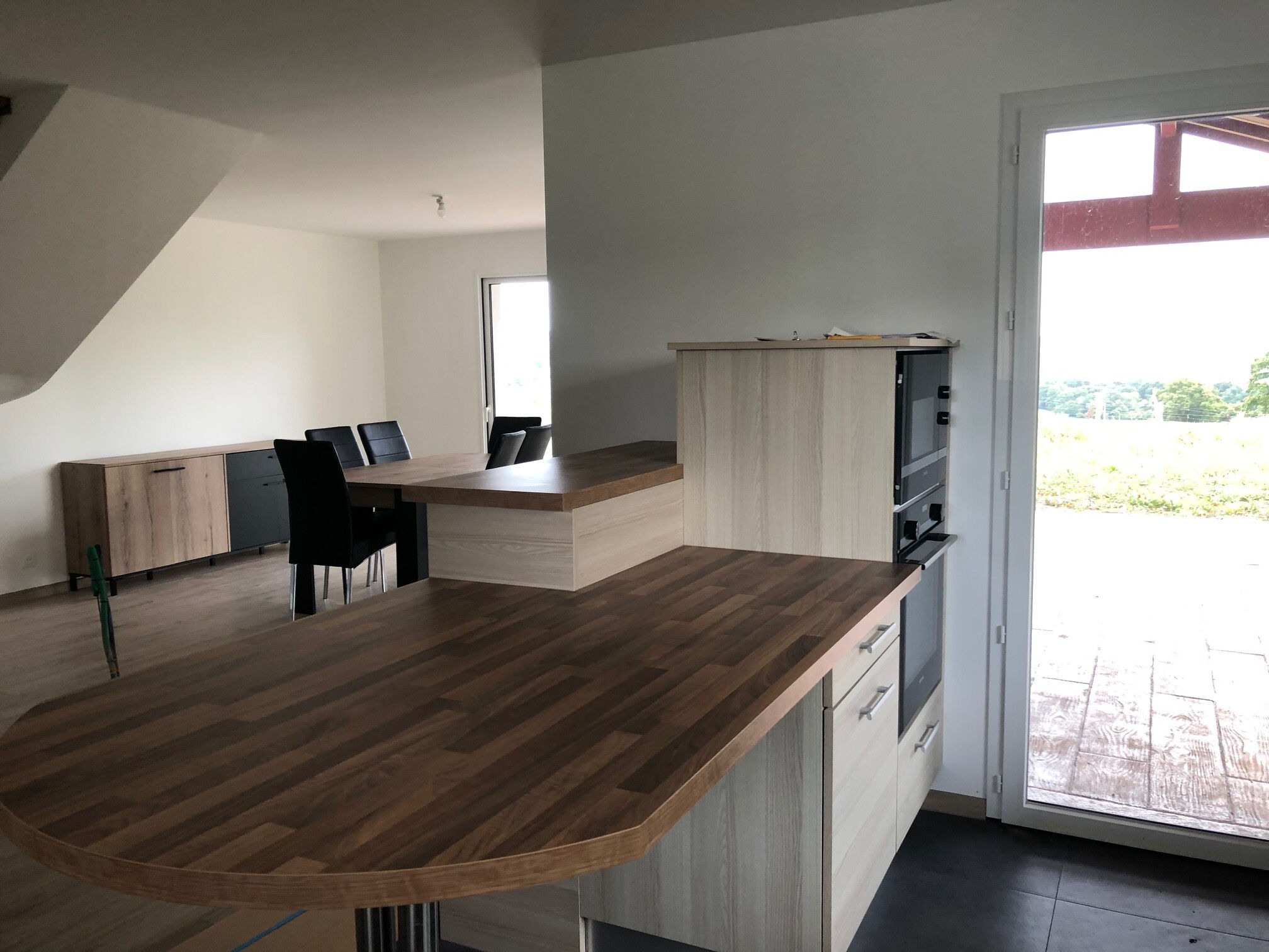 Maison neuve de qualité, composée d'un vaste séjour donnant sur une cuisine équipée et aménagée (plaque, hotte, four, micro-ondes, lave-vaisselle, frigo / congel, table, meubles), 2 chambres, wc indépendants, 1 salle de bains / wc, buanderie au rez-de-chaussée. Au 1er étage : hall desservant 1 chambre, 1 bureau et 1 salle de douche / wc. À l'extérieur, agréable terrasse bien exposée, un garage ouvert de 49 m² et un terrain de 3000 m². Pompe à chaleur. Bel environnement campagne au calme, vue dominante. Disponible fin février 2023.Informations LOI ALUR :