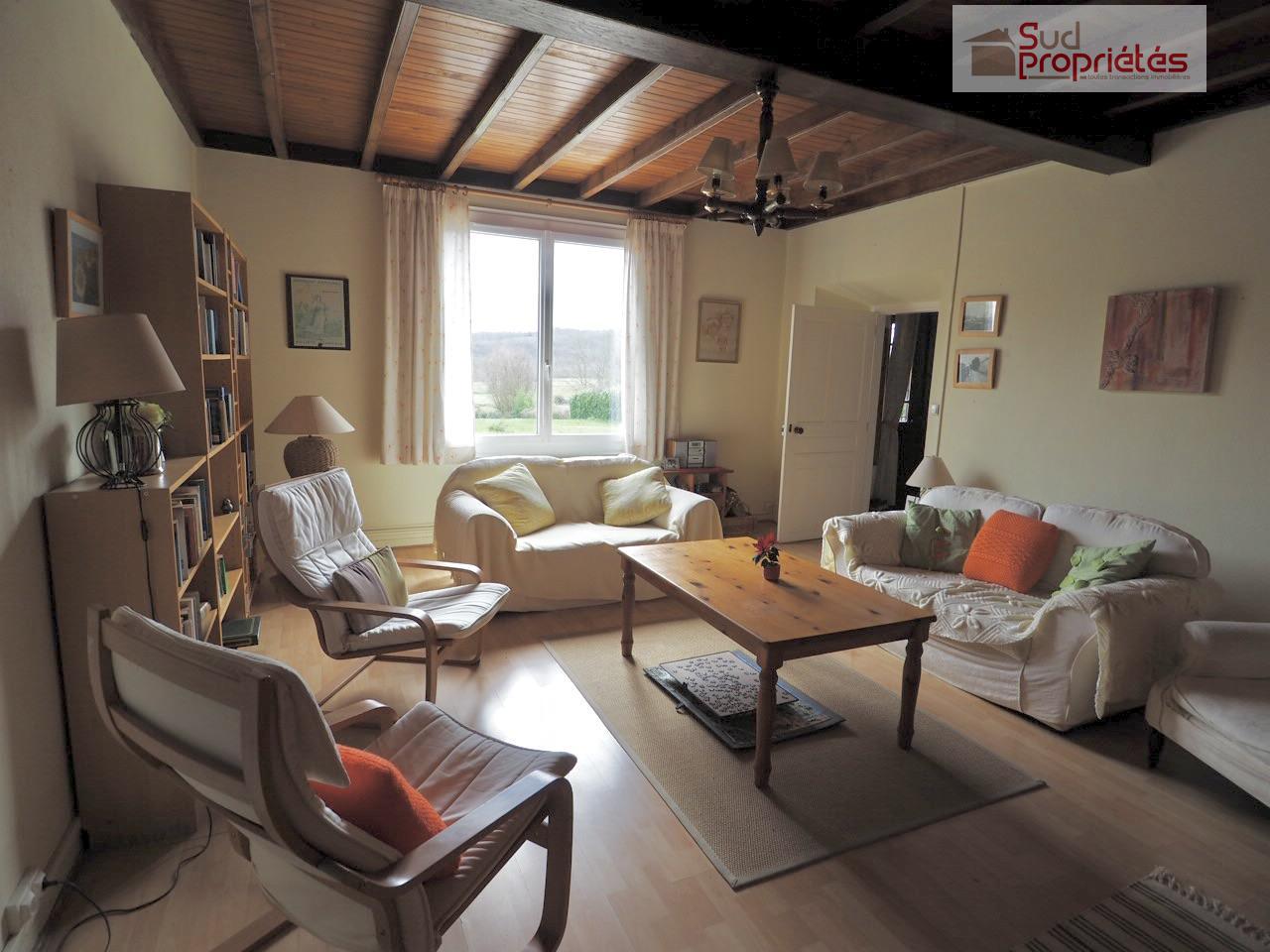 T7 de 173 m2 habitables sur 2 niveaux avec 4 chambres, 1 bureau ou chembre supplémentaire, 1 garage de 18 m2, 1 abri bois et une dépendance fermée supplémentaire de 29 m2 sur un terrain plat de 2300 m2 arrosé par l'eau du puits.