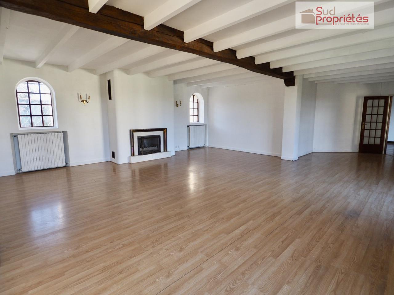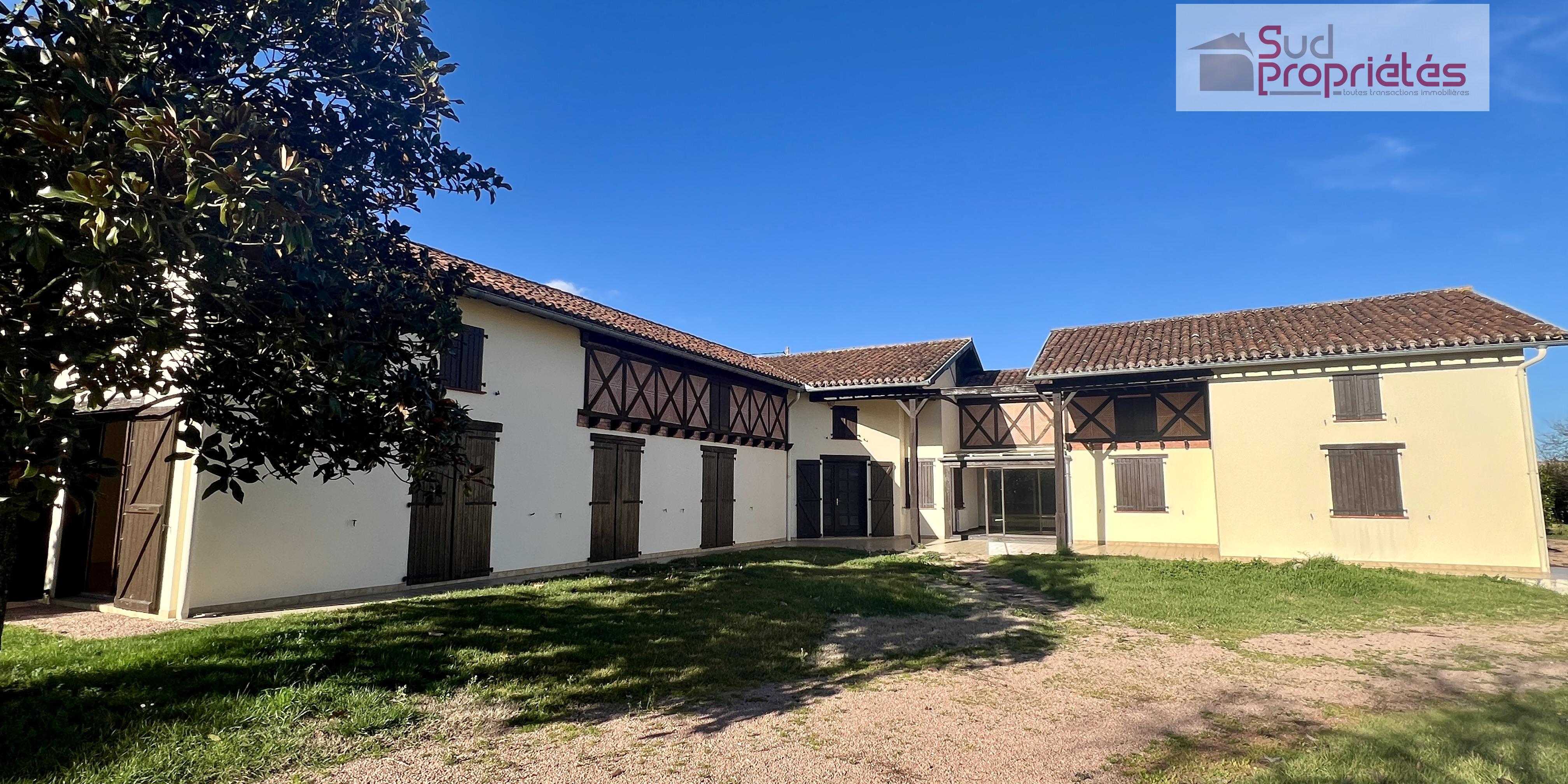 Boulogne-sur-gesse centre, à proximité à pieds de tous les commerces et commodités, grande maison T7 plain-pieds de 323 m2 avec double garage, abri et jardin avec vue sur les Pyrénées.