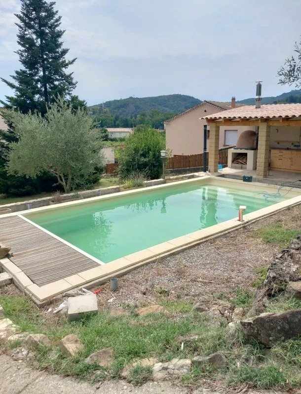 maison a vendre Nord Gard 30500 / A 2 minutes de Saint Ambroix, en position dominante avec superbe vue, belle villa de 1981 d'environ 137m² habitable. Elle offre une cuisine ouverte sur spacieux séjour, 2 chambres, salle de bain et douche, des combles isolés et aménageables d'env. 50m². Véranda ensoleillée dominant le terrain de 2060m² clos et arboré. Un Studio indépendant de 20m², bel espace piscine avec cuisine d'été et four a pizza. Quartier calme à proximité des commerces.. REF/ 23226.