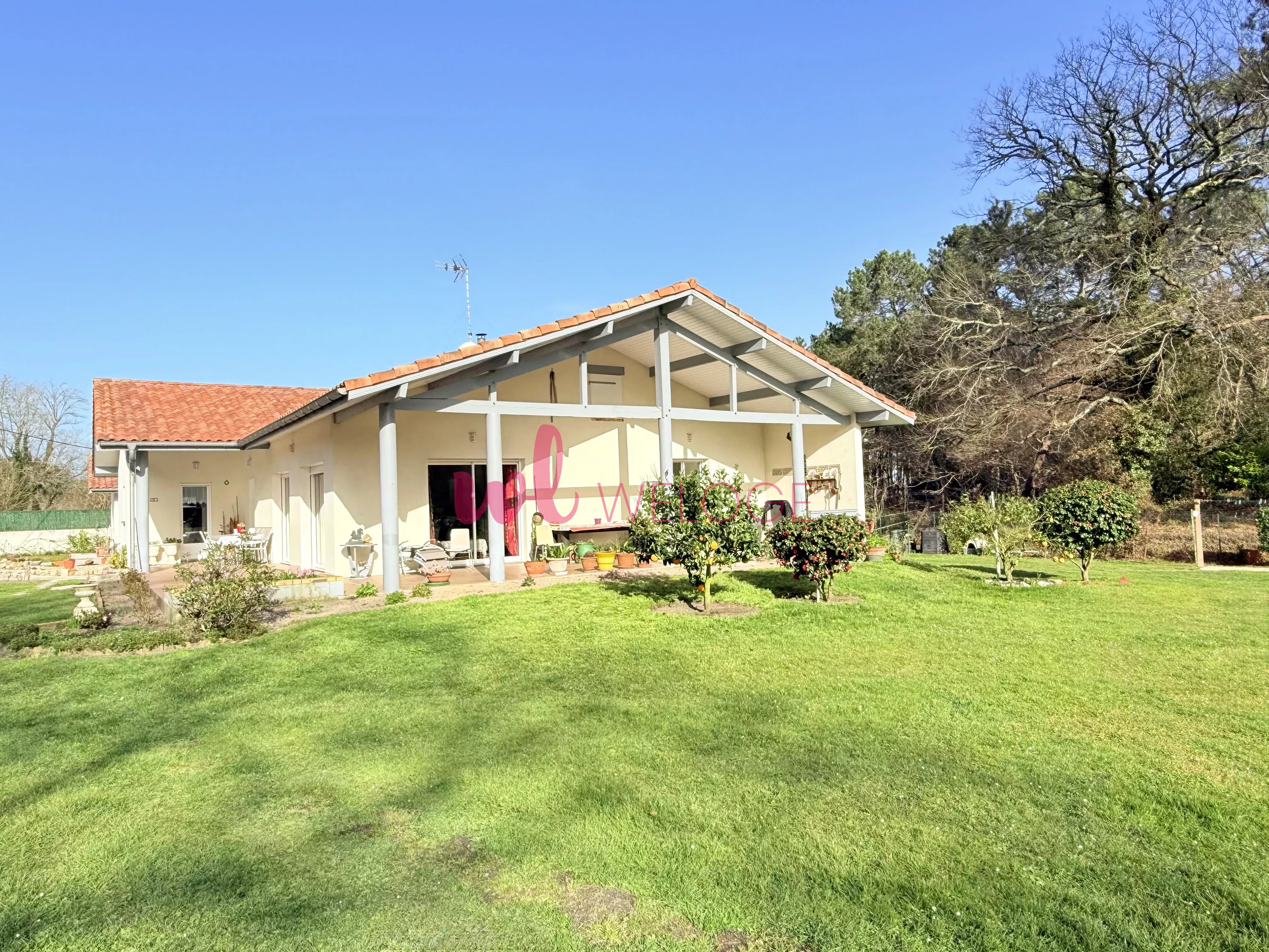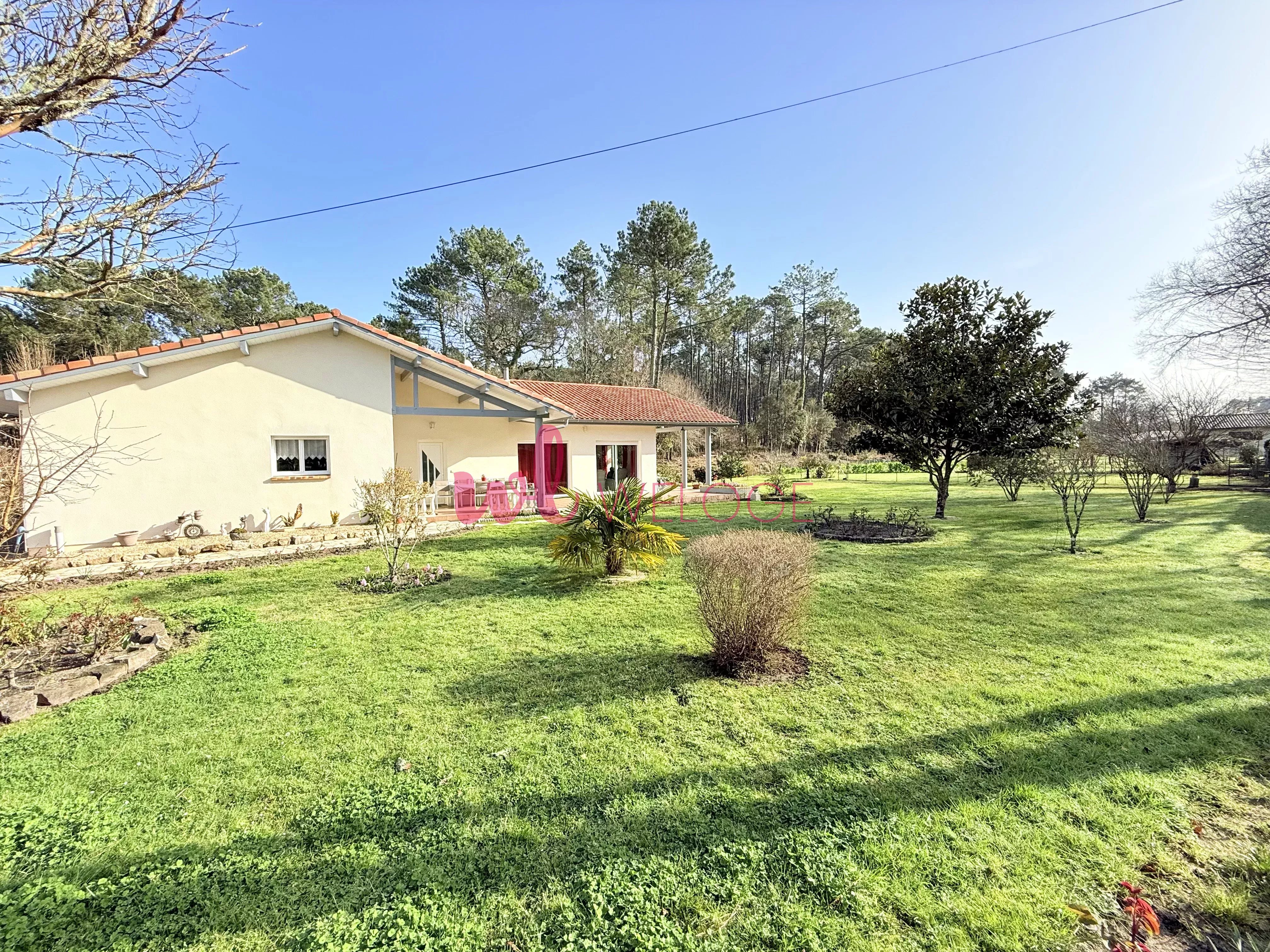 À Léon, charmante commune des Landes réputée pour son lac et sa proximité avec l’océan, découvrez cette maison contemporaine construite en 2008 qui déploie 175 m² habitables dans un cadre naturel privilégié. Dès l’entrée, vous serez séduit par la vaste pièce de vie lumineuse d'environ 50m2, composée d’un salon-séjour convivial ouvert sur deux terrasses exposées sud-ouest, avec une vue imprenable sur la forêt de pins. La cuisine, spacieuse et entièrement équipée, bénéficie d’un cellier attenant pour plus de praticité. La maison dispose de quatre chambres dont une suite parentale avec salle de bain privative comprenant douche et baignoire. Une salle de bain indépendante avec WC, un second toilette séparé ainsi qu’un bureau viennent compléter l’agencement fonctionnel et confortable de cette maison. Implantée sur un terrain de 1891 m² traversé par un ruisseau, elle offre un environnement rare, calme et sans vis-à-vis. Ses prestations de qualité incluent des menuiseries en alu, un chauffage au sol par géothermie, un poêle à bois et un portail motorisé. Située en impasse, elle assure une tranquillité absolue. Idéalement implantée, la maison permet de profiter de la douceur de vivre landaise : le lac de Léon et sa réserve naturelle se trouvent à quelques minutes, tout comme les magnifiques plages de Moliets, Messanges, Vieux-Boucau et Soustons. Que vous soyez amateur de baignades, de balades en forêt, de surf ou de détente en famille, vous serez séduit par la diversité des activités accessibles depuis cette propriété. Une maison qui conjugue confort, charme naturel et emplacement privilégié à deux pas de l’océan. Cette maison vous est proposée au prix de 570 000 €. Contactez-moi pour plus d’informations ou pour planifier une visite