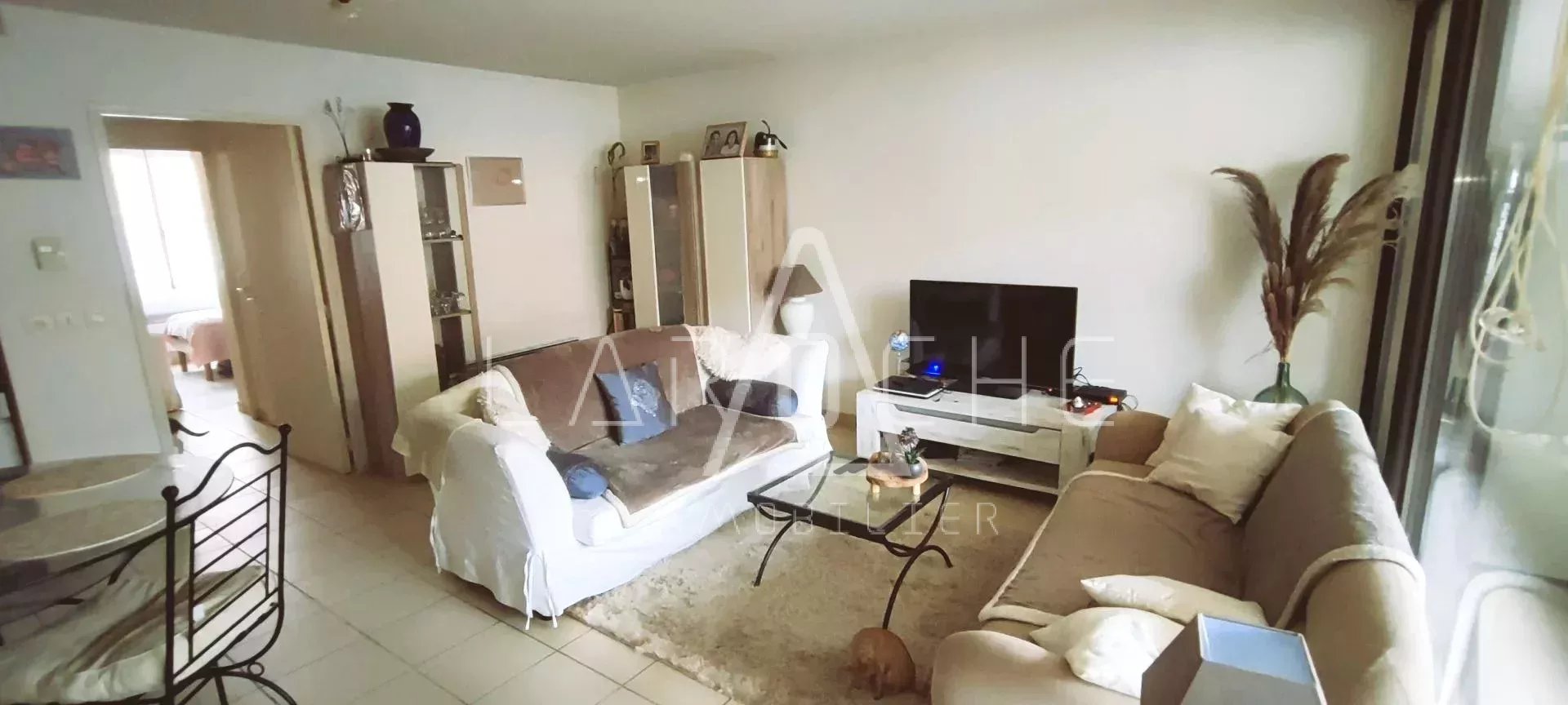 Agréable appartement T3 en rdc d'environ 65 m2, lumineux et traversant, en résidence sécurisée avec parking privatif. Plein centre du village où vous trouverez tous les commerces et commodités. Se composant d'une loggia, un grand salon séjour avec cuisine ouverte, équipée "neuve", salle de bains, toilettes séparés, ainsi que 2 belles chambres avec rangements intégrés. Une visite s'impose sans tarder