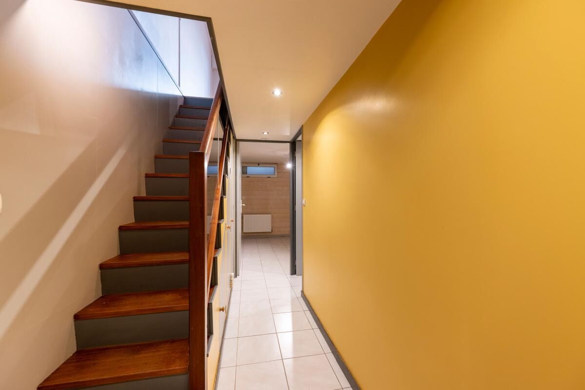 L'escalier intérieur prolonge l'espace vers un niveau inférieur d'environ 30 m² composé de deux pièces avec rangements.
