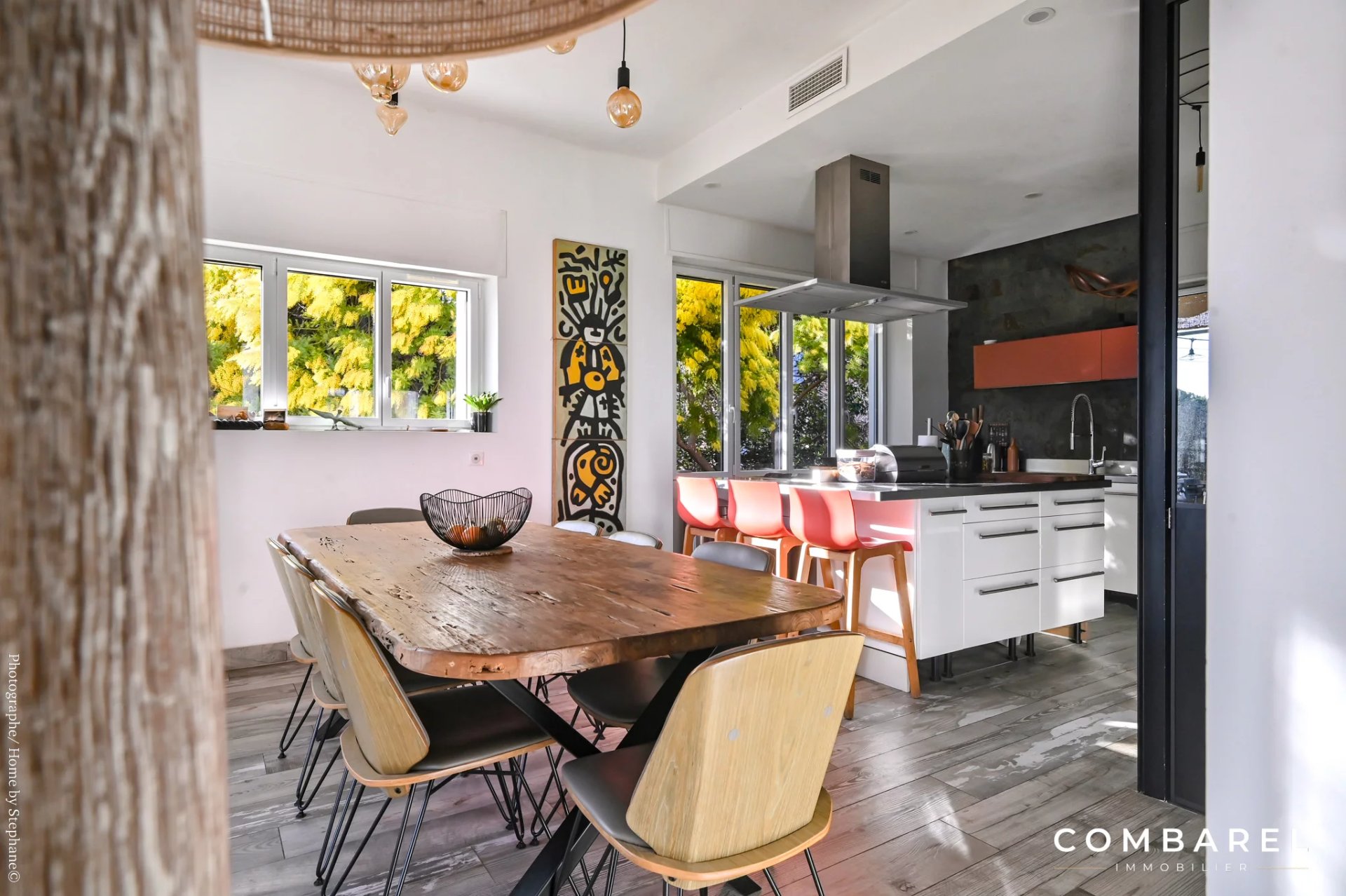 Vous adorerez à coup sûr son spacieux séjour avec ses nombreuses et grandes ouvertures permettant de lier l'intérieur à la grande terrasse de 41m2 environ. Sa cuisine (avec arrière cuisine) ouverte sur la salle à manger, elle même ouverte sur la terrasse, est un appel aux bons moments en famille ou entre amis.