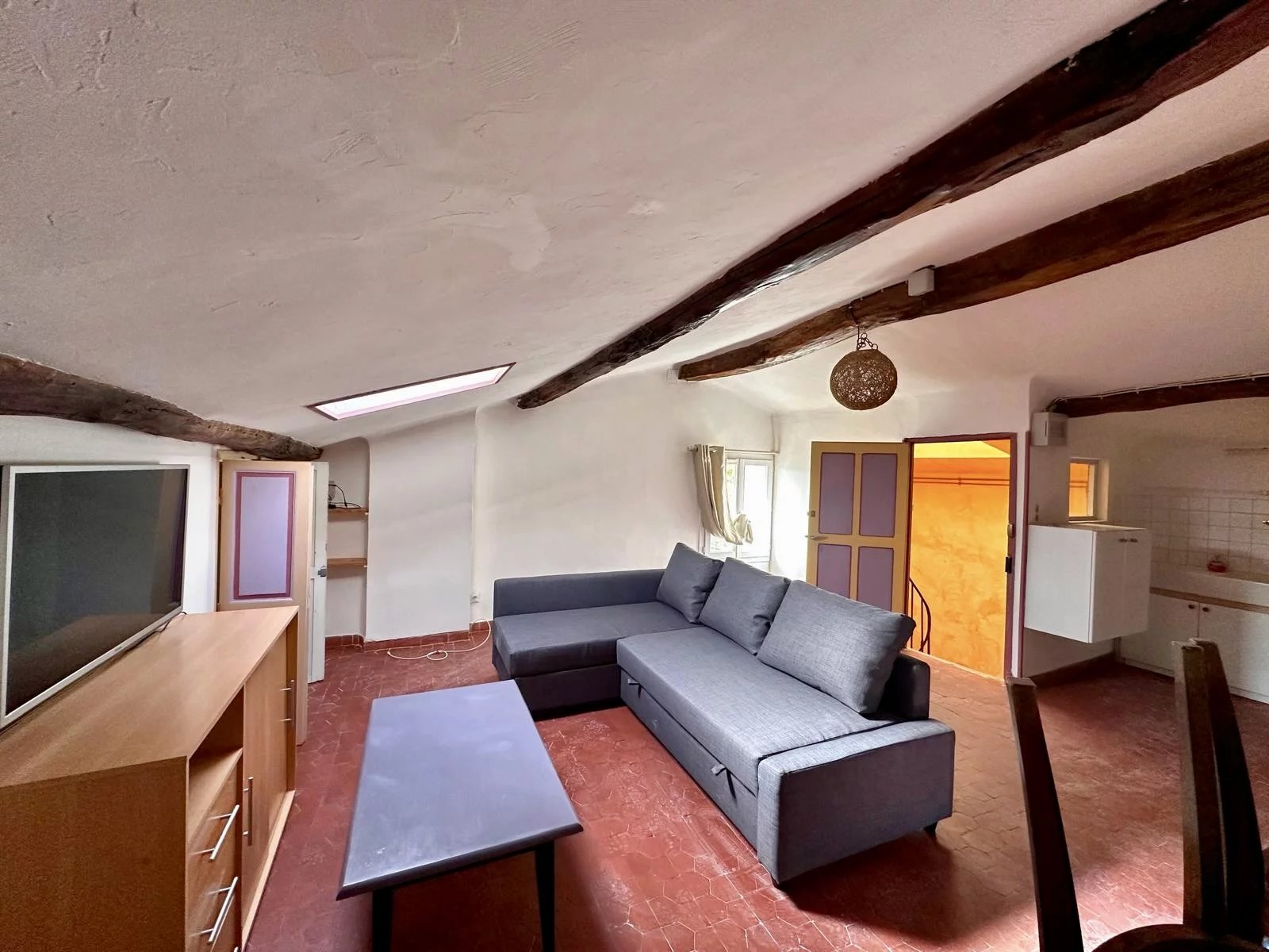 Cet appartement chaleureux de 25 m², situé au cœur de Salernes, offre tout le nécessaire pour une vie confortable. Avec une pièce principale bien éclairée, il est idéal pour une personne seule ou un couple souhaitant profiter d’un espace de vie pratique et accueillant. La décoration mélange charme provençal et modernité, mettant en valeur les poutres apparentes qui ajoutent du caractère à l’espace. La pièce est suffisamment spacieuse pour accueillir un canapé confortable, une table basse et un coin télévision. De plus, une cuisine fonctionnelle est à votre disposition pour préparer de délicieux repas. Le quartier est paisible, offrant un cadre de vie agréable tout en étant proche des commodités locales. Salernes est connu pour ses paysages pittoresques et sa richesse culturelle, ce qui en fait une destination idéale pour ceux qui désirent allier tranquillité et découverte.