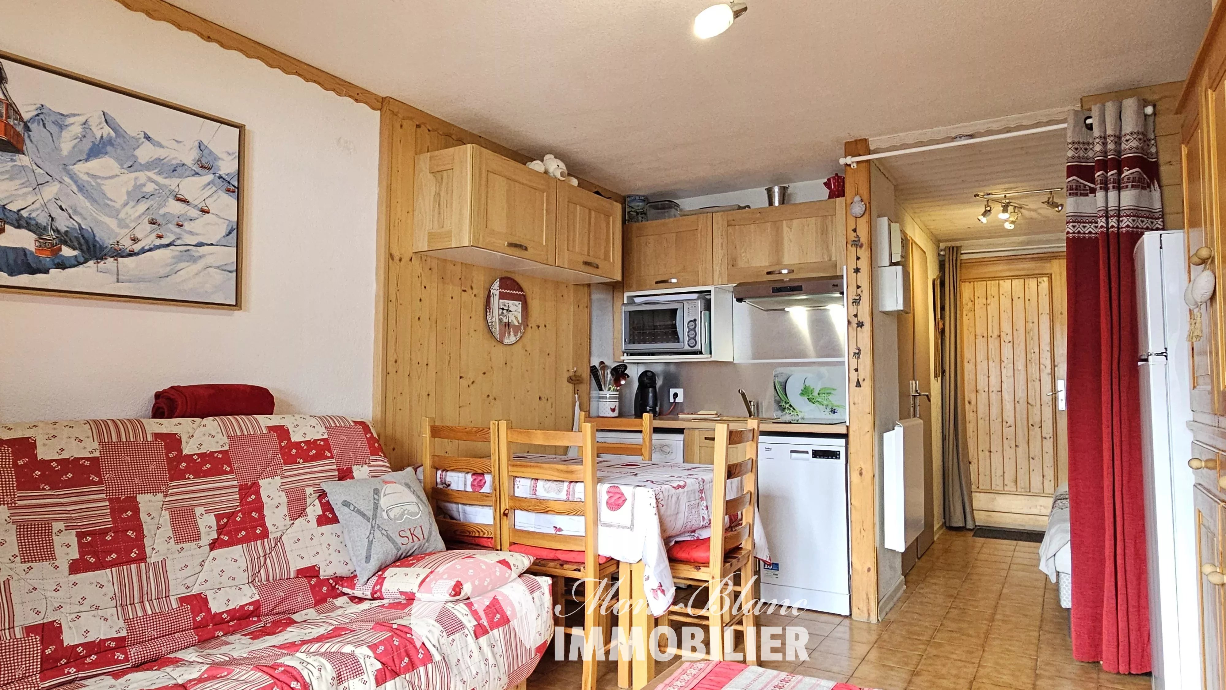 Questo monolocale di 22,06 m² a Saint-Gervais si trova all'inizio dei côteaux du Bettex, a 2 minuti dagli impianti di risalita e molto vicino alla fermata della navetta. È composto da un soggiorno con angolo cottura che dà accesso a un balcone esposto a sud. Una zona notte nell'ingresso, un bagno e un WC separato. Sono presenti anche una cantina, un armadietto per gli sci e un parcheggio privato all'aperto.