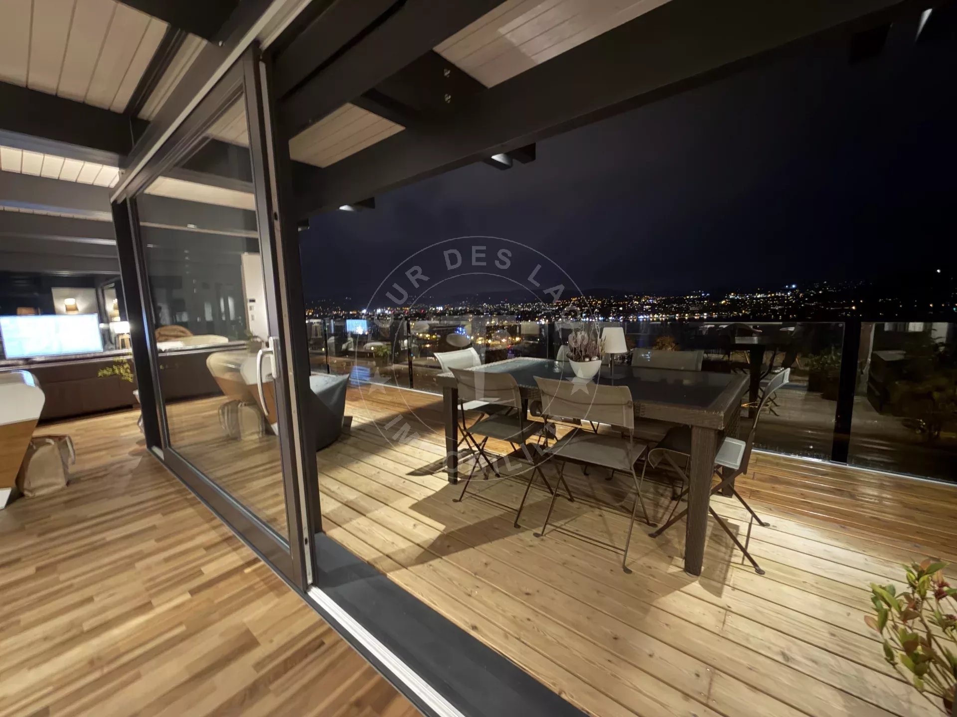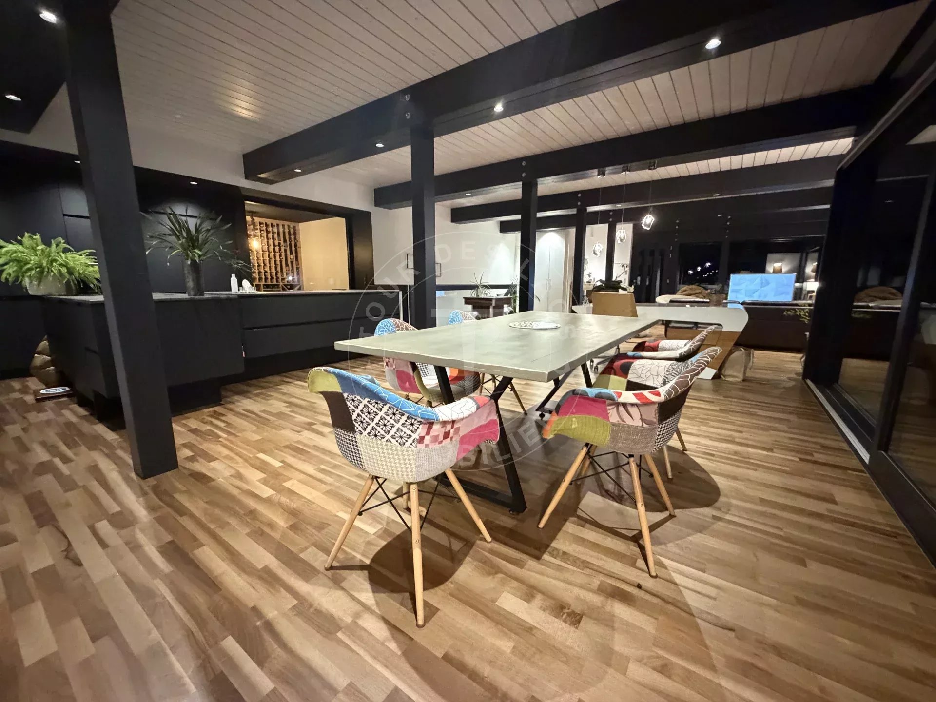 Ses matériaux haut de gamme : cuisine moderne entièrement équipée, salles d'eau contemporaines, parquets massifs, grande cave à vin, propriété sécurisée et clôturée, en font un bien d'exception sur le bassin annécien.