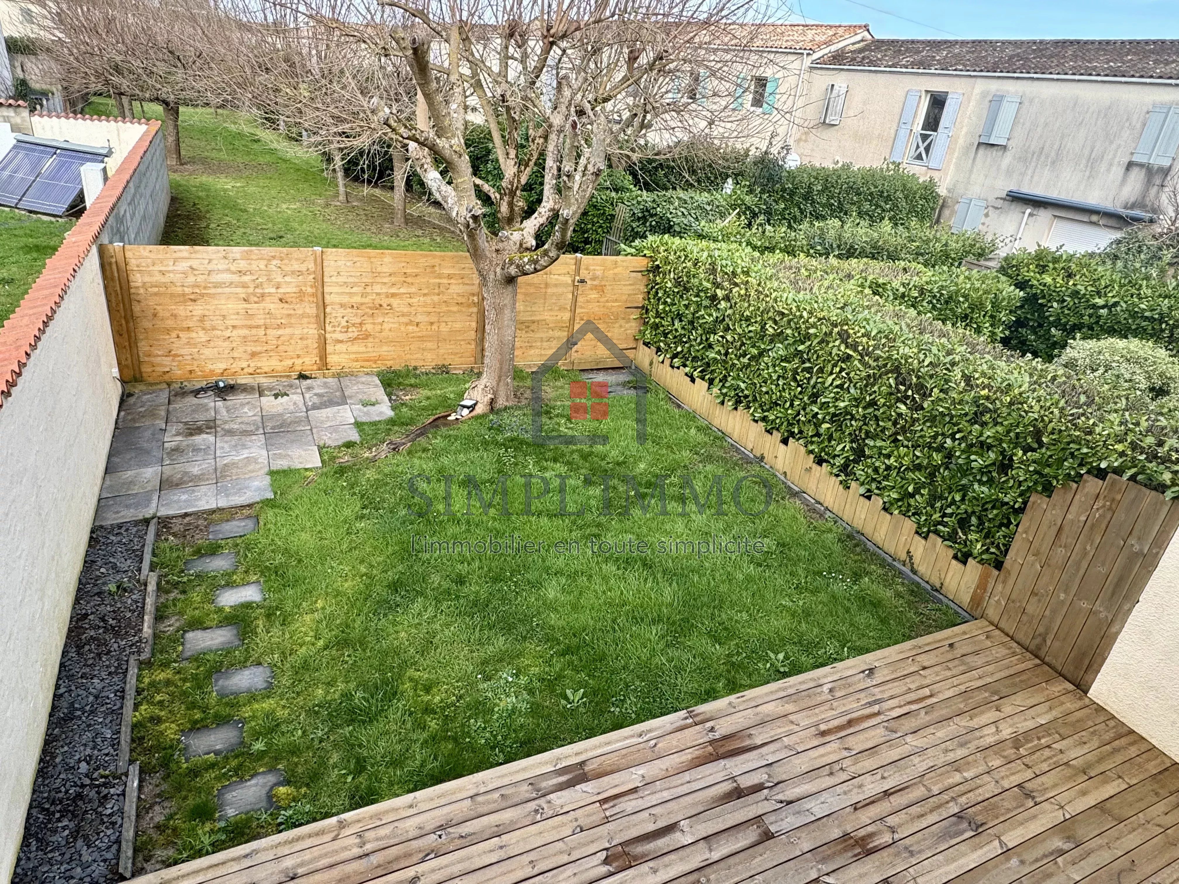 À Échillais, proche des commodités, maison de 86 m² entièrement rénovée. Pièce de vie lumineuse avec cuisine aménagée et équipée neuve, trois chambres avec placards, salle de bains, WC séparé. Jardin clos avec terrasse en bois. Idéale pour primo-accédants ou investissement locatif. Maison entièrement rénovée, chauffage PAC air/air neuf. À visiter rapidement. Dans une copropriété de 43 lots. Quote-part moyenne du budget prévisionnel 227 €/an. Aucune procédure n'est en cours.