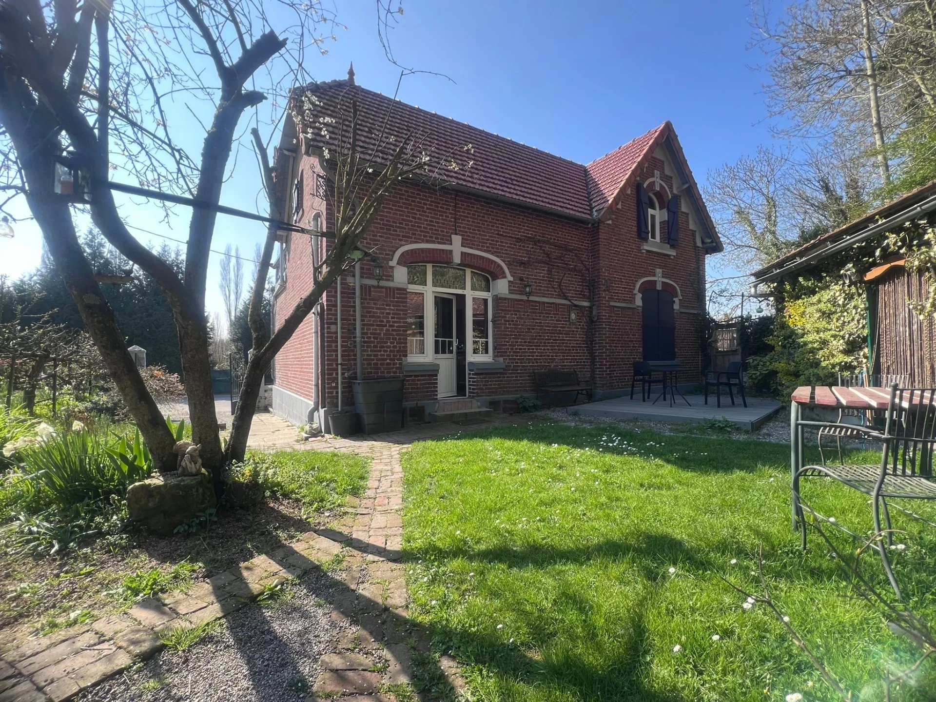 Vous cherchez le calme, l’histoire et le cachet de l’ancien ? Située dans le charmant village de Honnecourt-sur-Escaut, à seulement 20 minutes de Cambrai et de Saint-Quentin, cette bâtisse en briques rouges est une véritable pépite pour les amoureux d’authenticité. Une âme préservée, des volumes baignés de lumière Dès l'entrée, le ton est donné : de superbes carreaux de ciment d’époque vous accueillent et vous guident vers les pièces de vie. Espaces de réception : Un salon chaleureux et une salle à manger spacieuse offrant de beaux volumes sous plafond. Le petit plus : Une superbe véranda avec murs en pierre apparente et poêle, l’endroit idéal pour votre café matinal ou un jardin d’hiver, quelle que soit la saison. L'escalier d'époque mène à l'espace nuit où vous découvrirez des chambres avec parquets d'origine et fenêtres en arche, offrant une vue dégagée sur la nature environnante. Un extérieur pensé pour la détente Le jardin est un véritable havre de paix, parfaitement clos et sans vis-à-vis gênant : Une belle terrasse en bois pour vos soirées d’été. Une terrasse haute type "rooftop" avec balustrade, offrant un point de vue unique sur le village. Dépendances et accès soignés complètent ce bien rare. Les points clés : Façade impeccable avec volets bleus (grand cachet visuel). Proximité immédiate de l’Abbaye de Honnecourt et de l’Escaut (balades à pied). Maison libre de suite : prête à accueillir votre projet de vie ou de résidence secondaire. L'avis du propriétaire : "Une maison saine, lumineuse, où chaque pièce raconte une histoire. Idéale pour un premier achat, une famille ou un projet de gîte de charme." Prix : 149 500 € FAI Secteur : Honnecourt-sur-Escaut Rare sur le secteur : une bâtisse avec autant de caractère à ce prix, ça ne reste jamais longtemps. Contactez-moi pour organiser une visite et laissez-vous séduire par l'atmosphère unique de ce lieu. Ruben Marle Immobilier RSAC Douai 944 580 893 06x28x37x60x75
