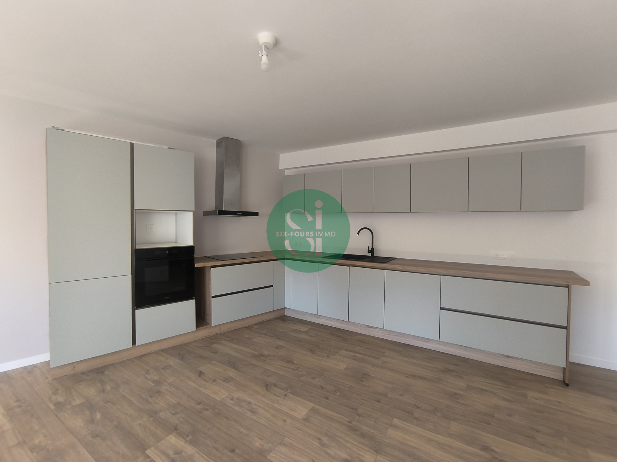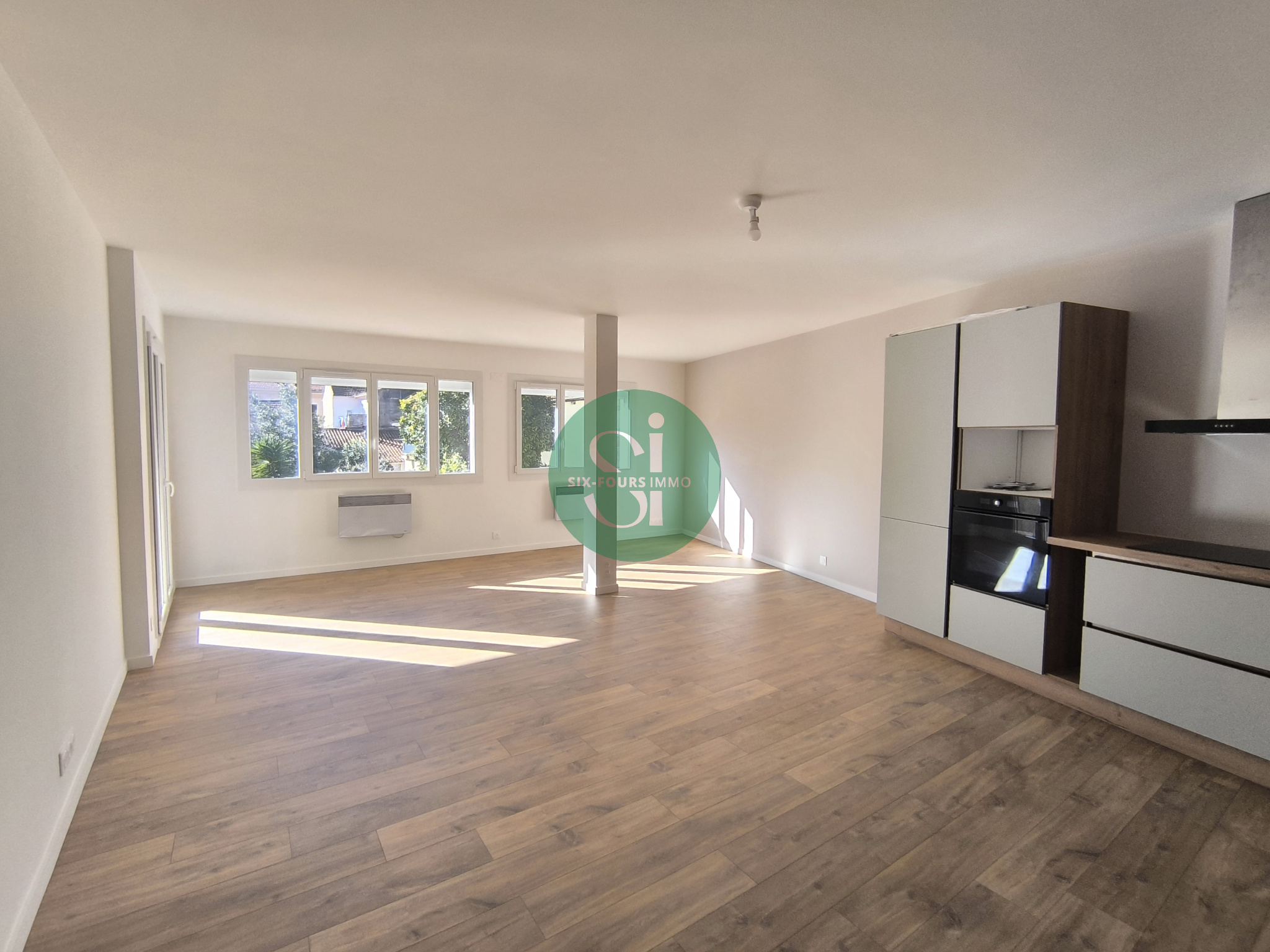 L'agence SIX FOURS IMMO vous propose en exclusité ce magnifique appartement traversant de type 4 d'environ 95m2 avec terrasse entièrement rénové avec goût et matériaux de qualité.