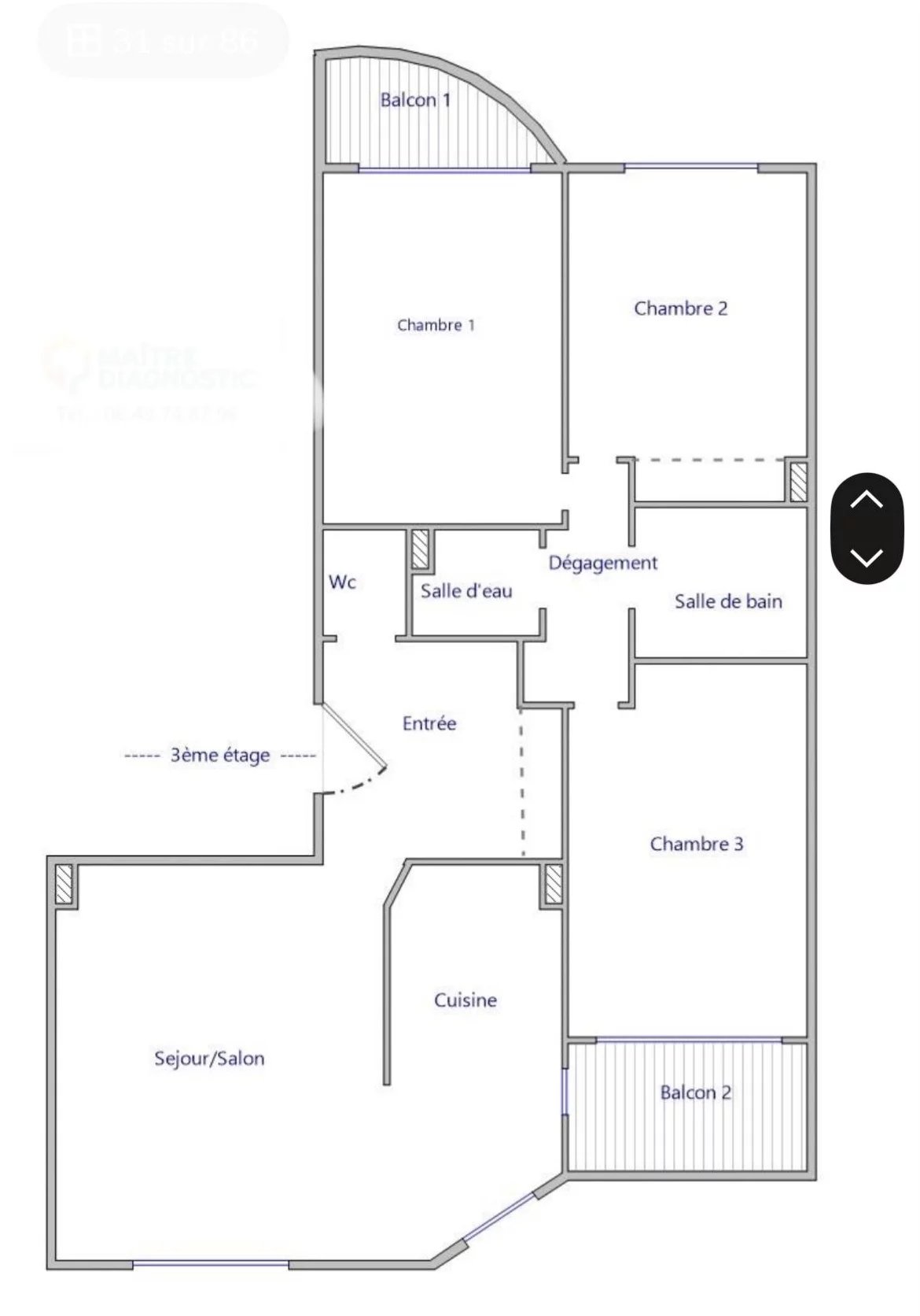Au sein d'une résidence moderne de bon standing, appartement de 91 m2 baigné de lumière. Un appartement de 91 m2 au 3ème étage avec ascenseur.